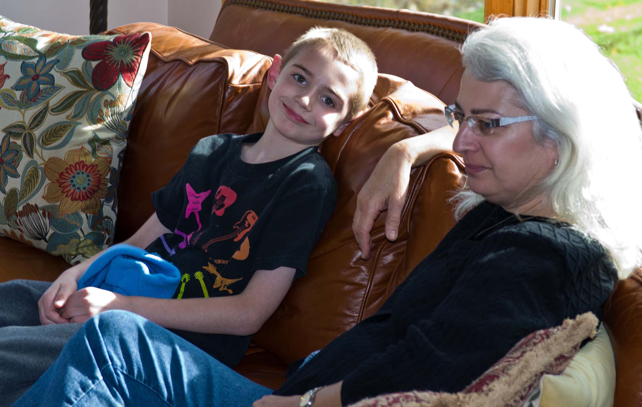 Jamie slept downstairs on my leather chair whne he had a bad cold. |