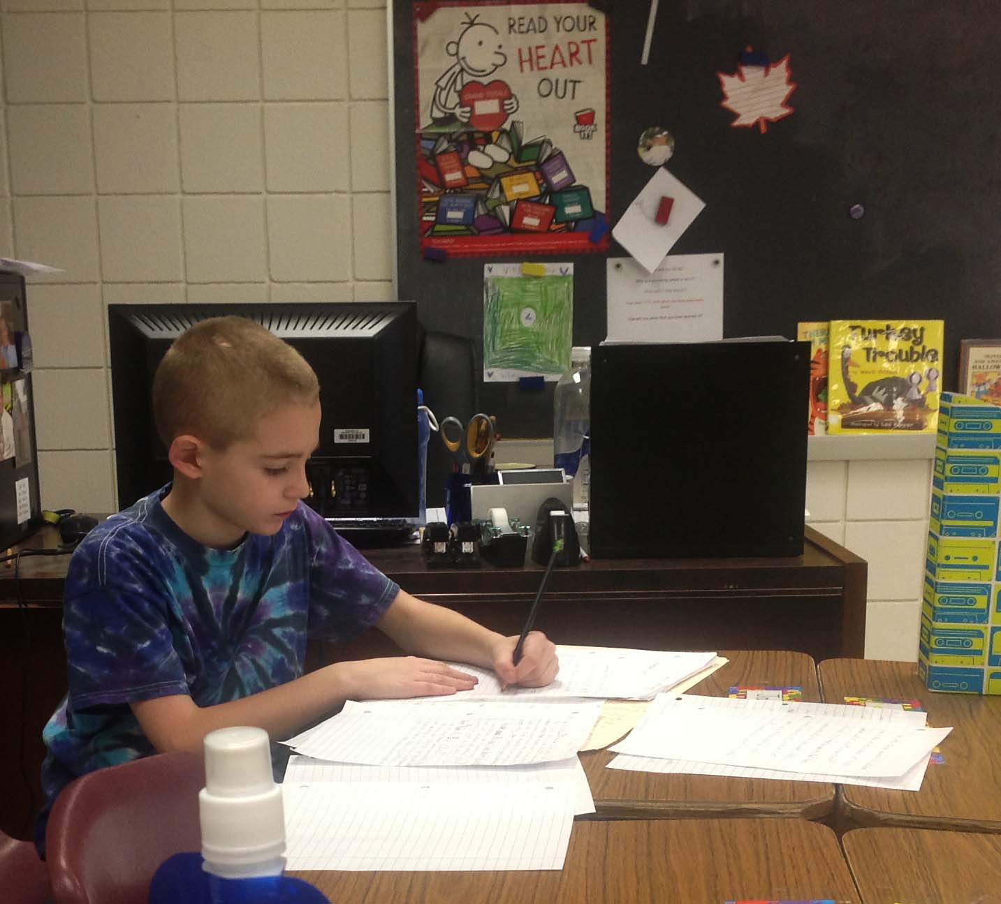 Jamie, writing at school. Thanks to Mr. Pluim for sending this photo |