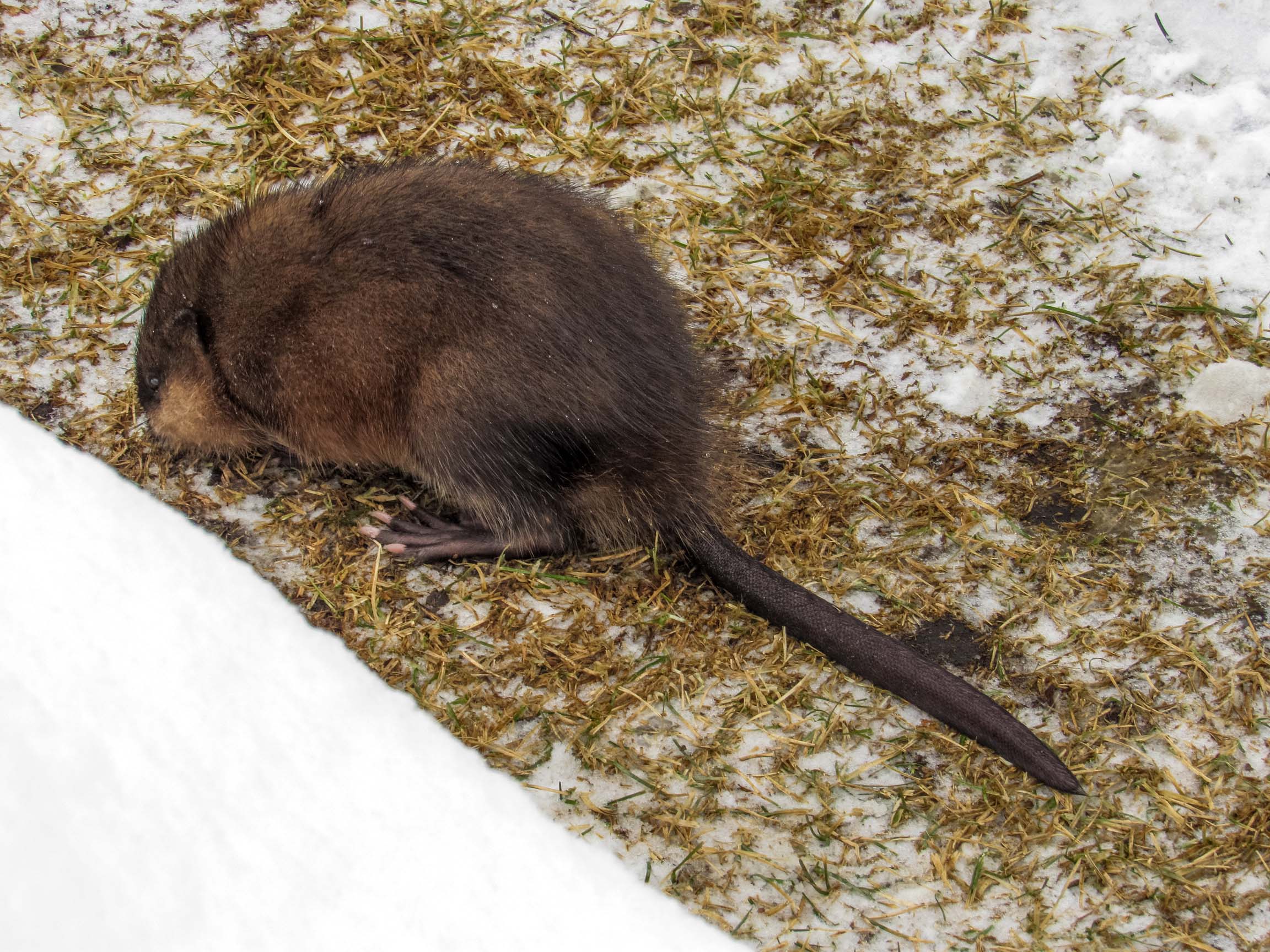 of a muskrat in our neighbor's yard, February