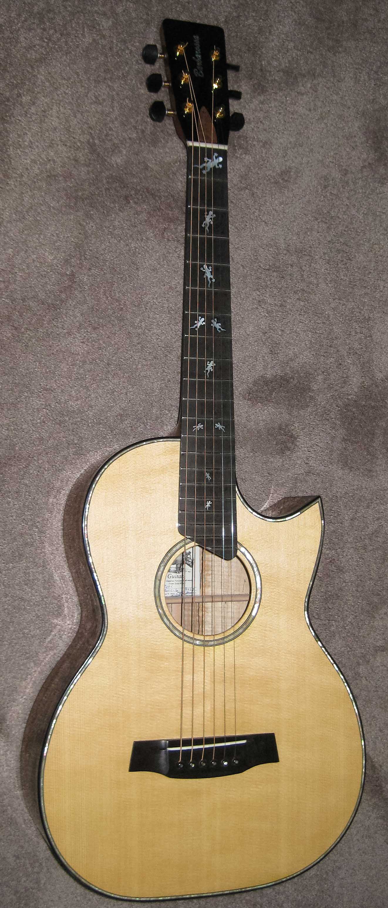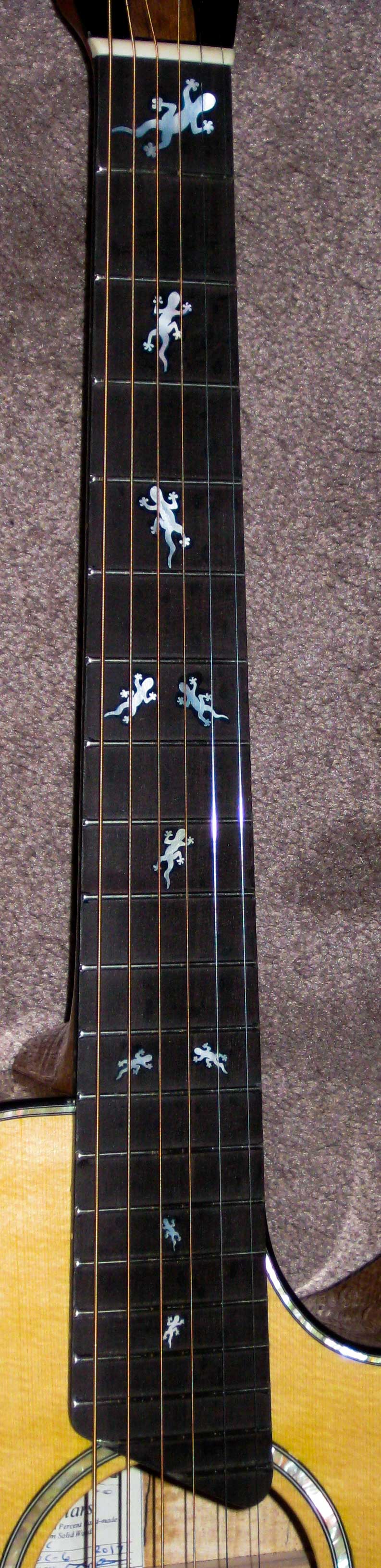 Phyllis's new guitar: Gecko inlays