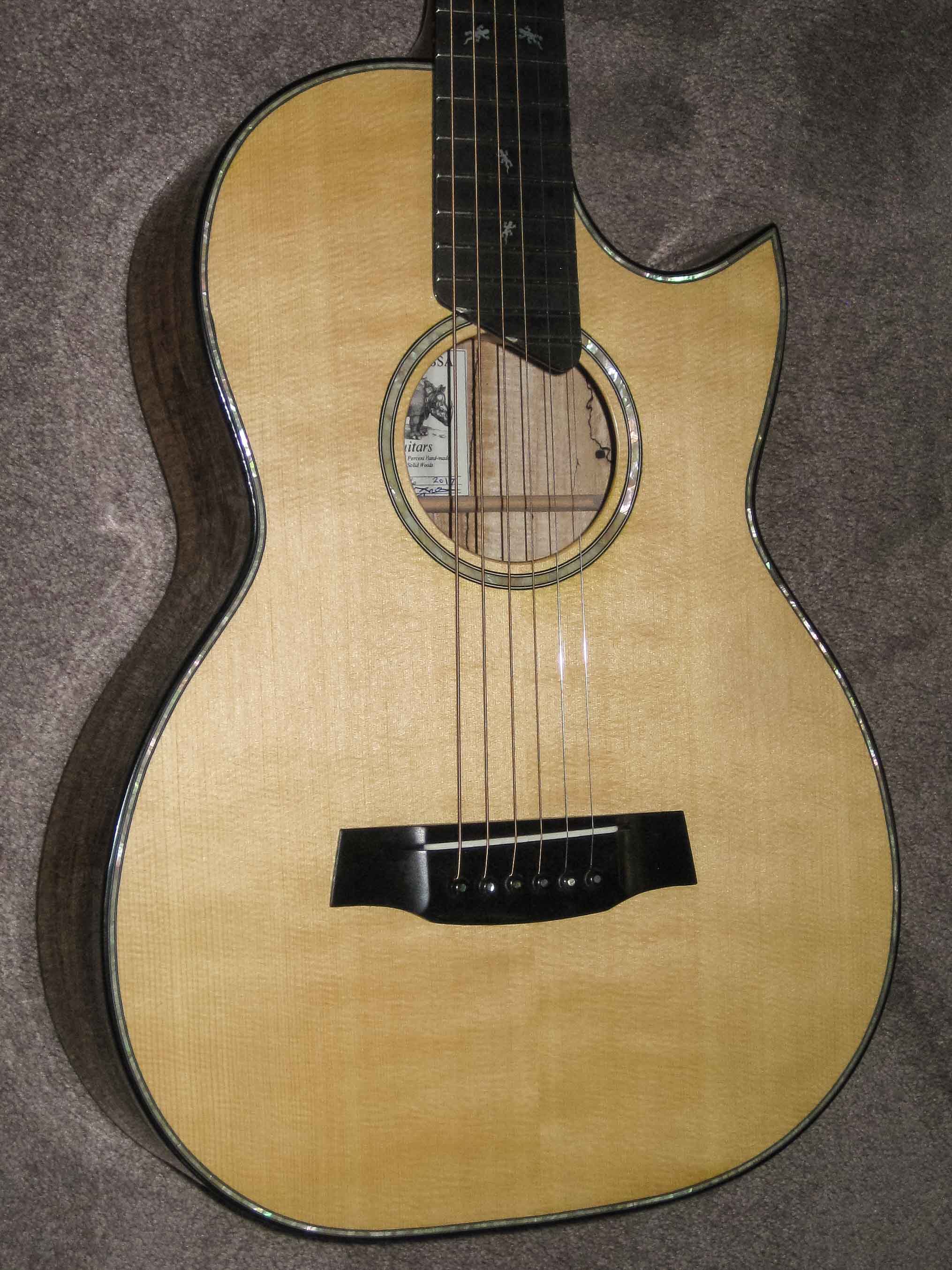 Sitka top and spalted, curly Bigleaf Maple back and