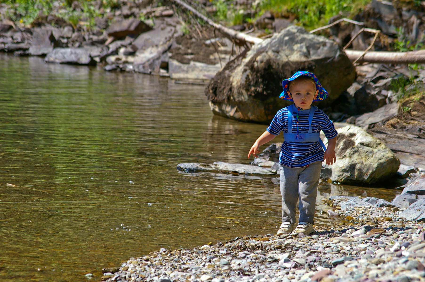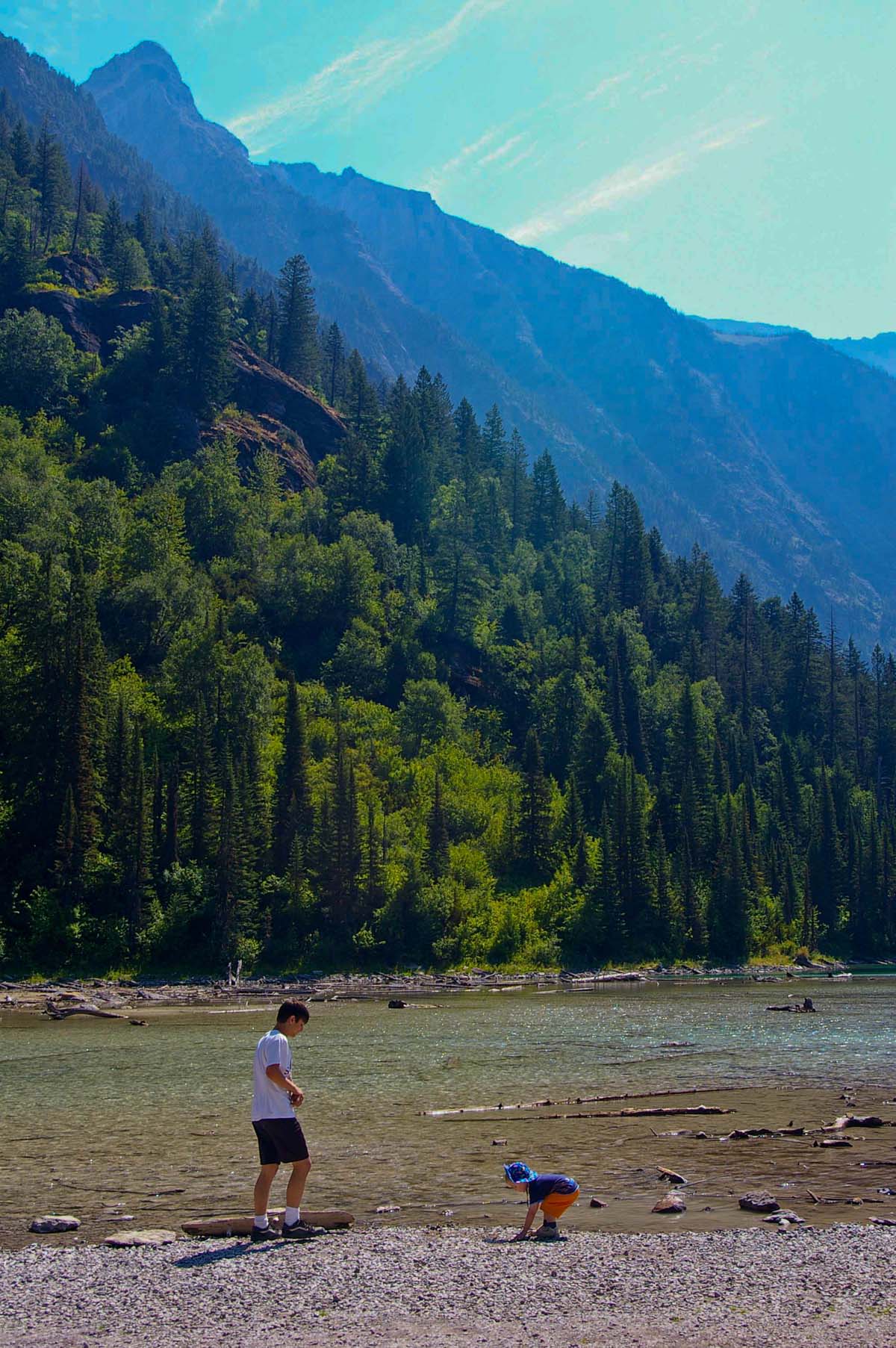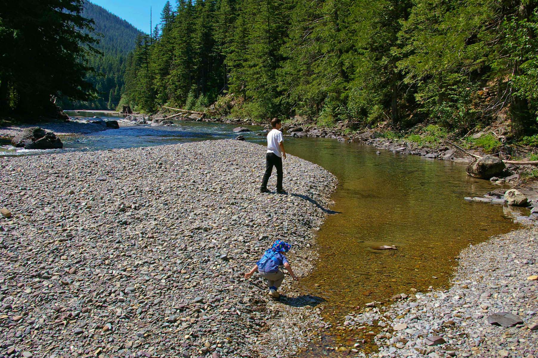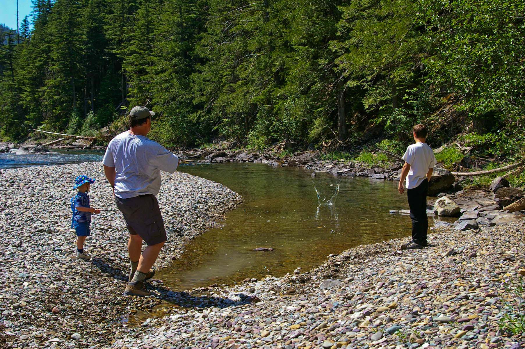 McDonald Creek hike: Throwing rocks |
