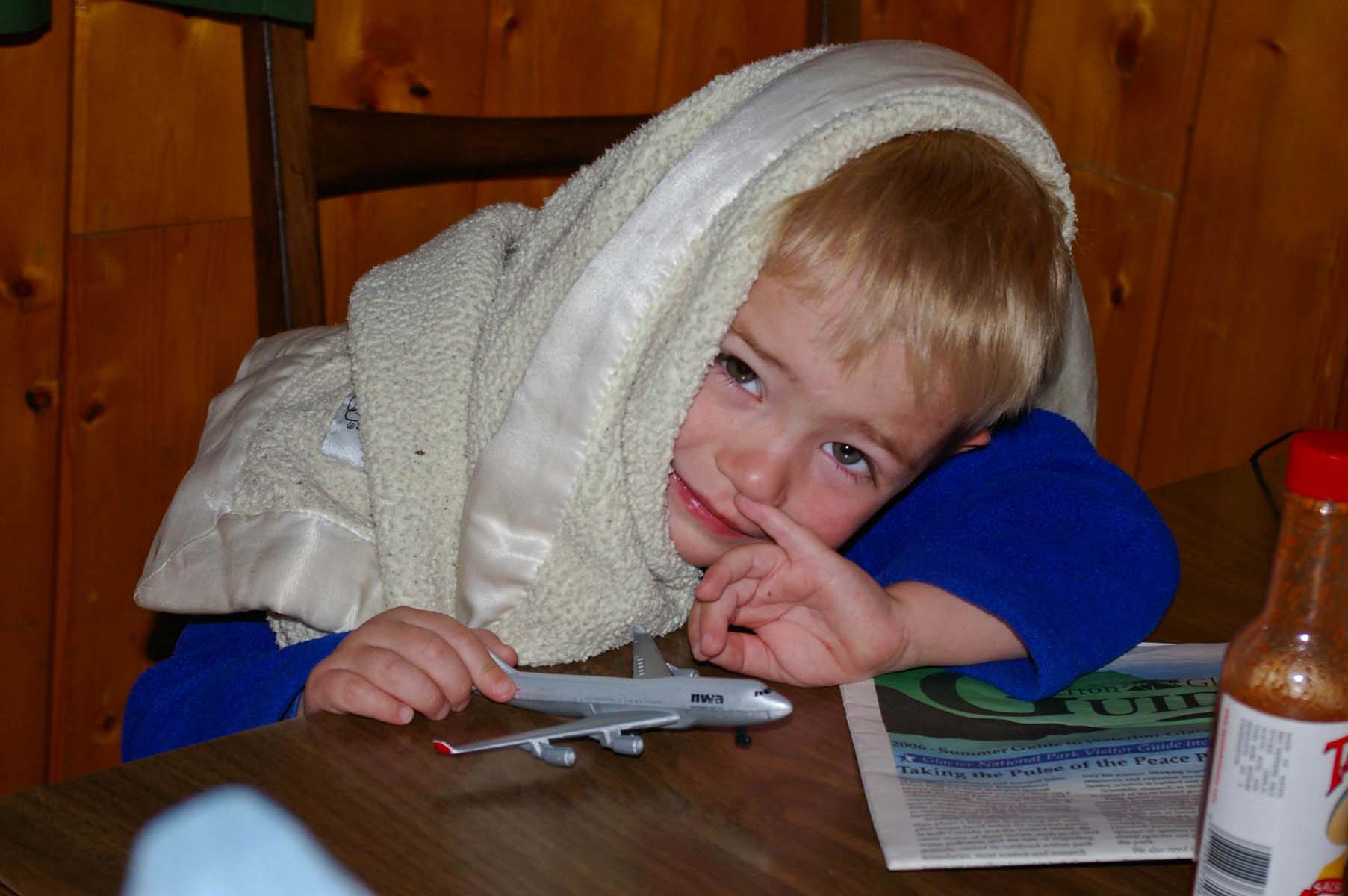 Sleepy 2-year old boy after hiking |