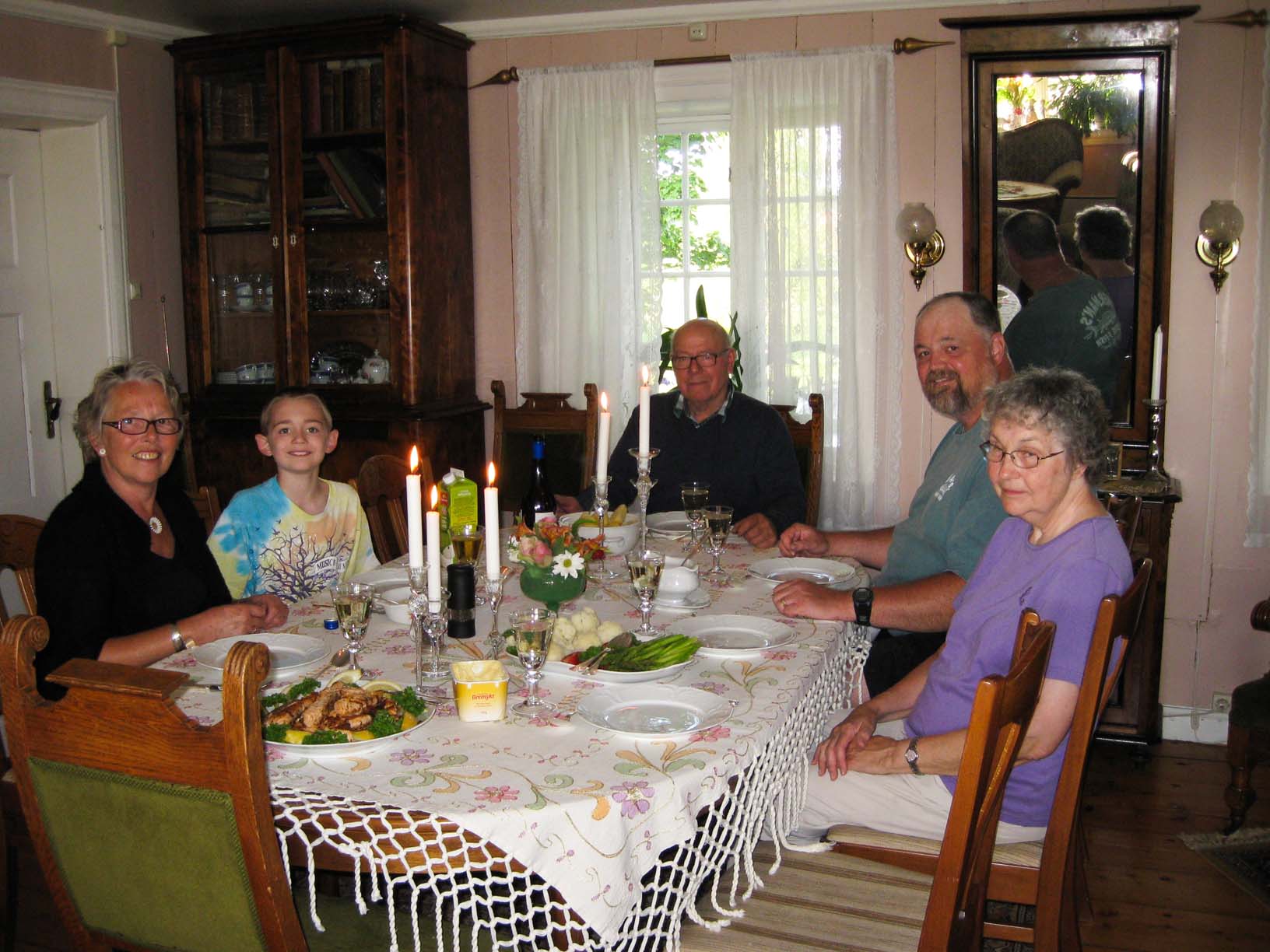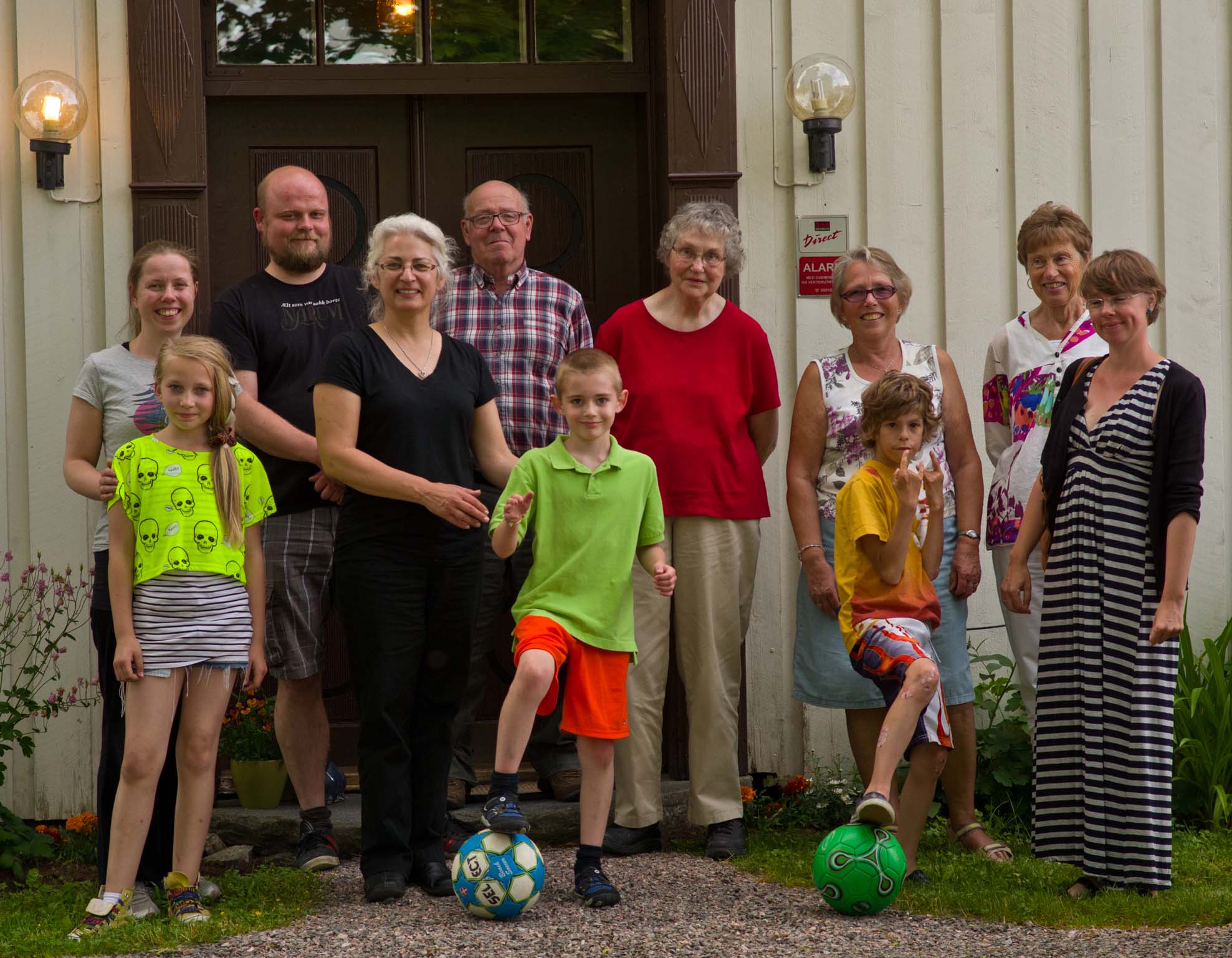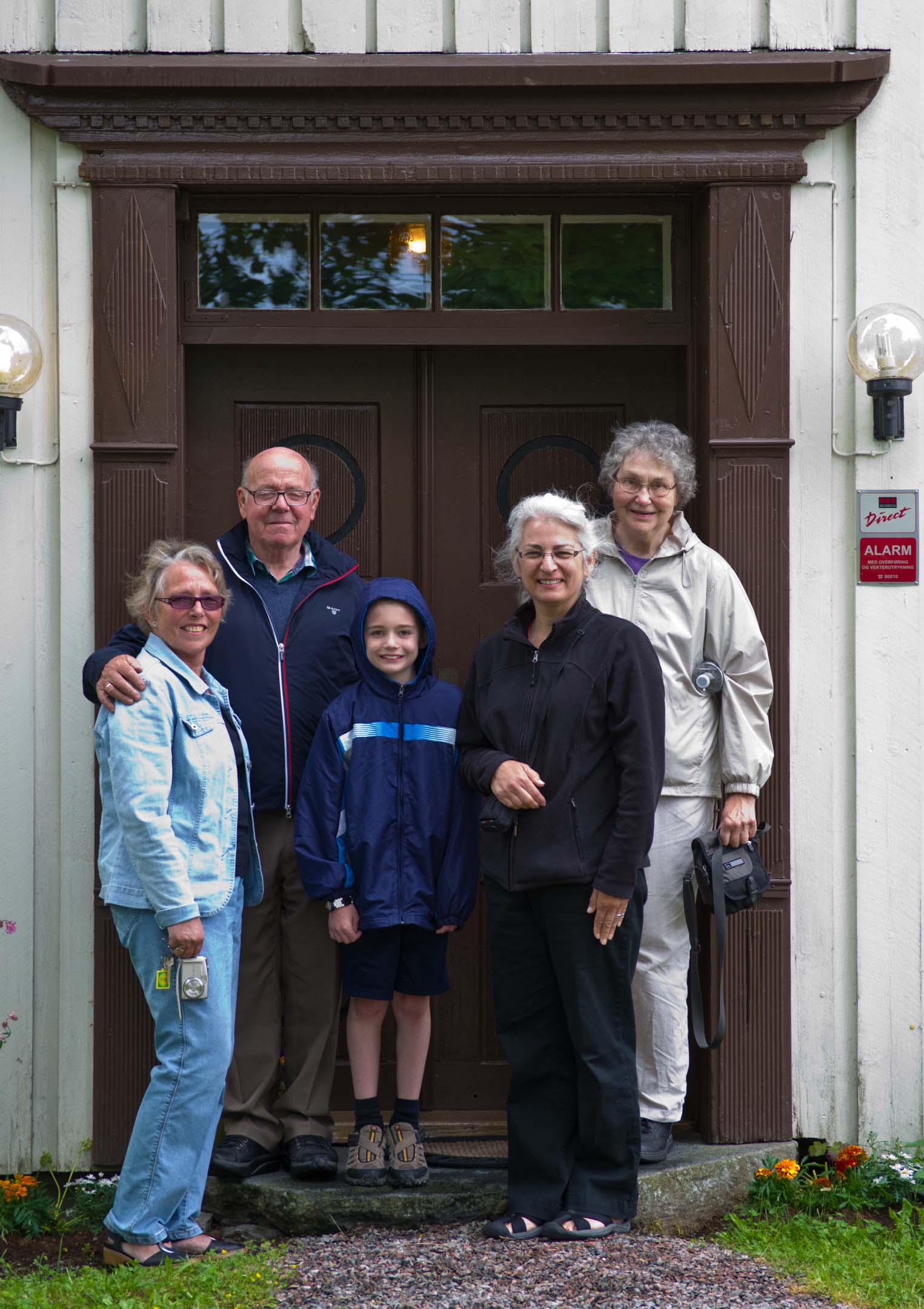 Big family group at "the doorway": Benedikte, Amalie, Bjørnar, Phyllis, John Arne, Jamie, my Mom, Ingrid, Anders Johan (Ellen Johanne and Jørn's son), Ingrid's best friend, Ellen Johanne |