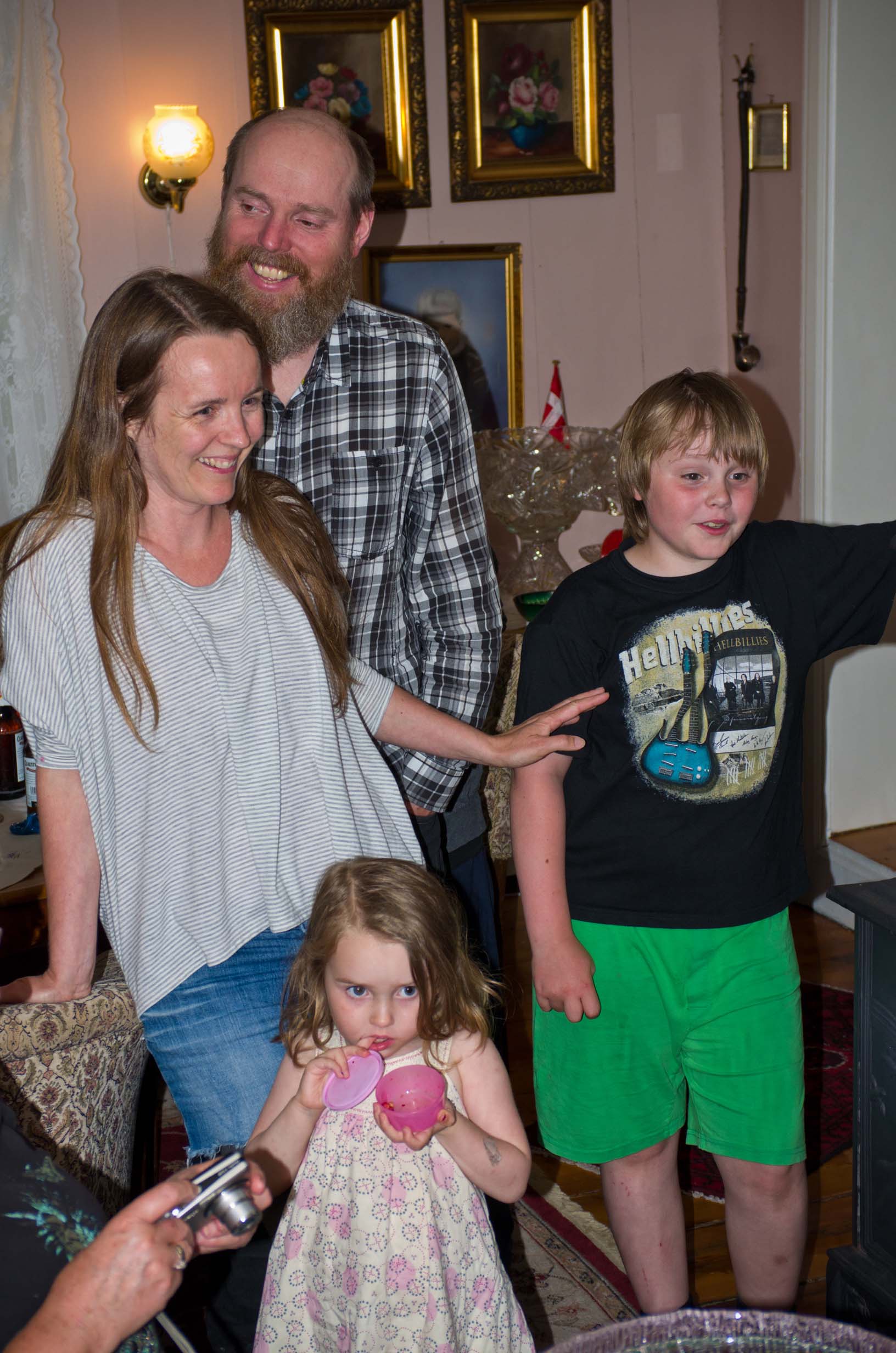 Family gathering at the Bendiksens Arild's children Sophia and Philip, Jan-Erik |