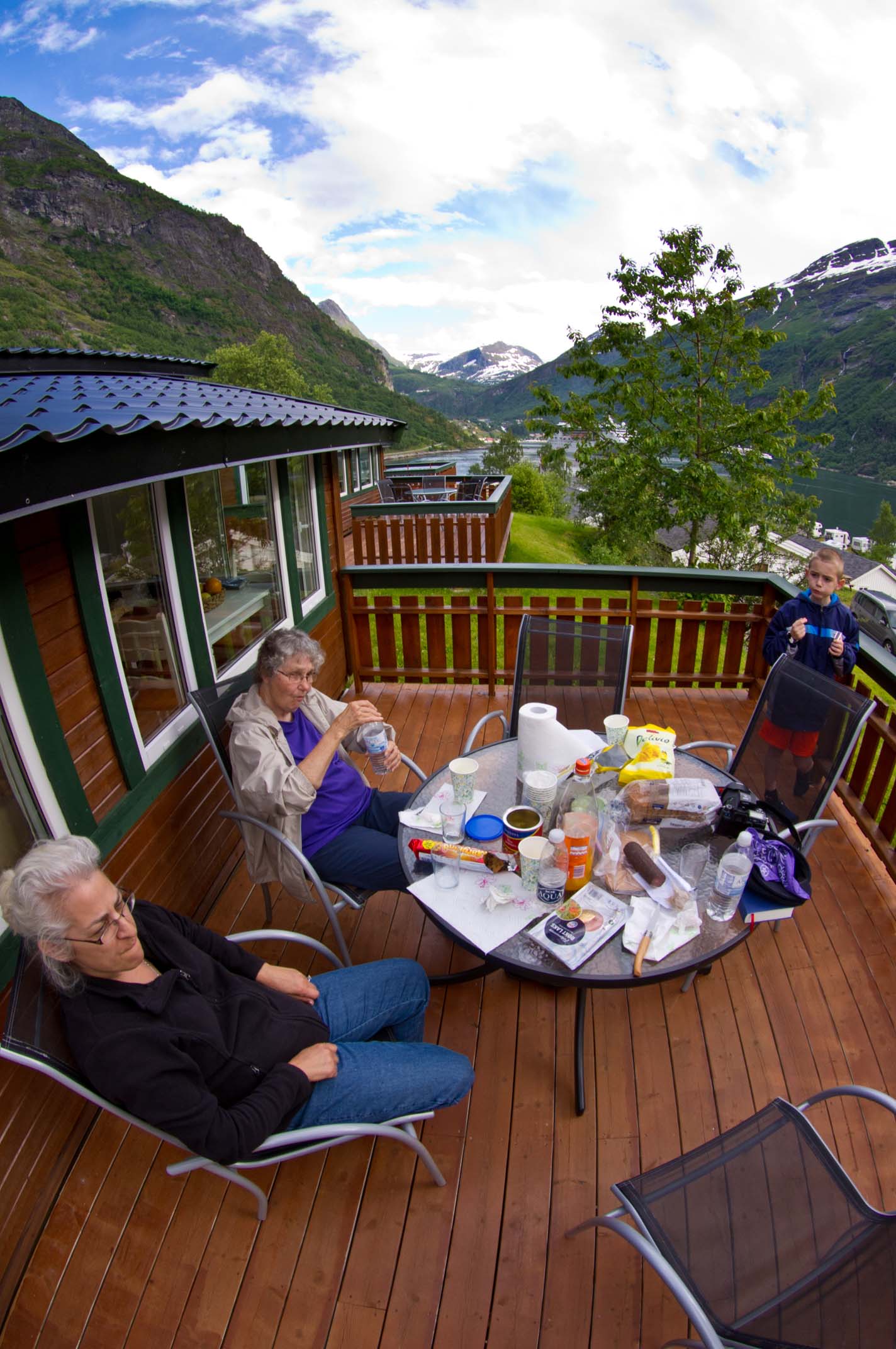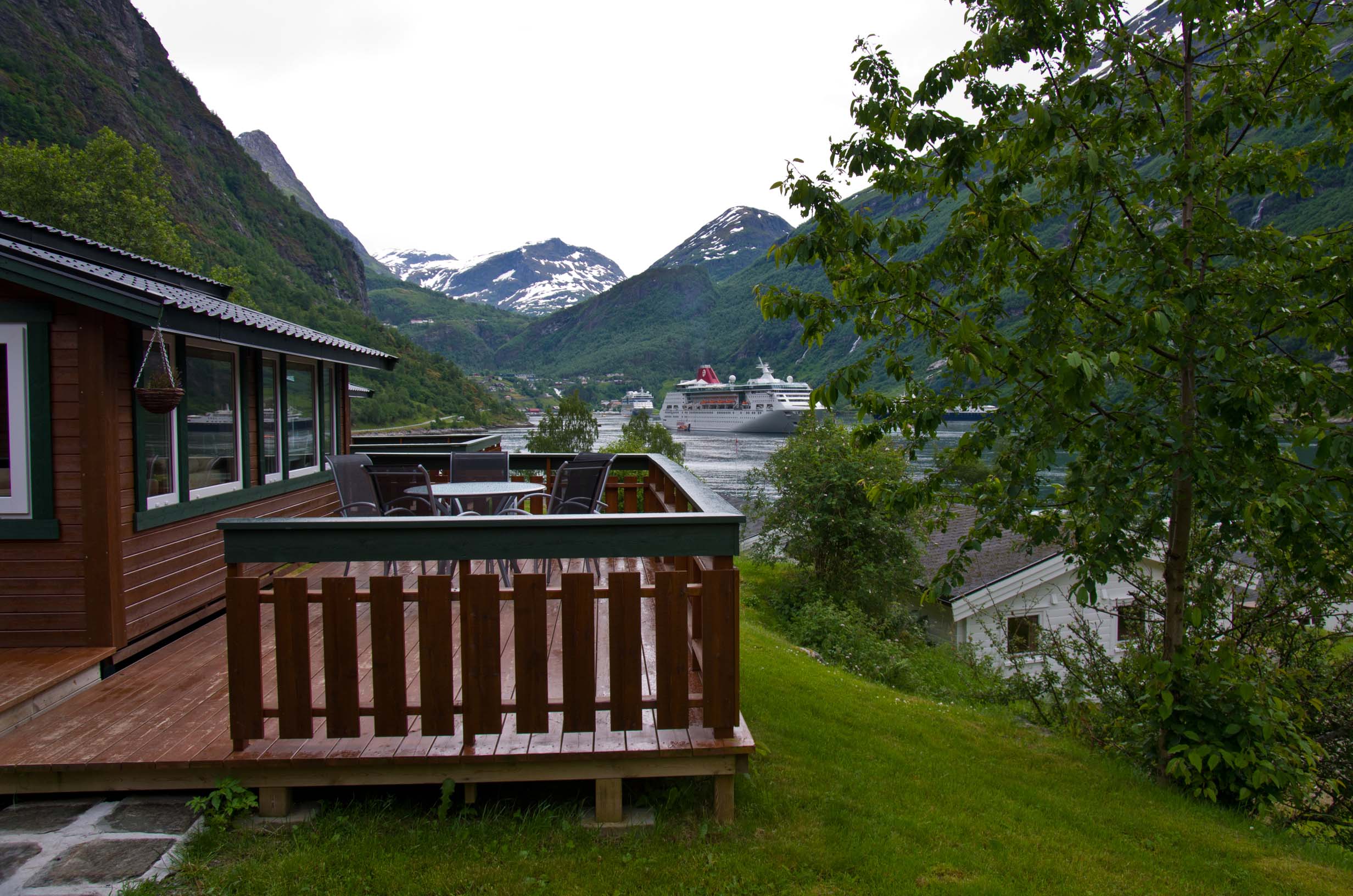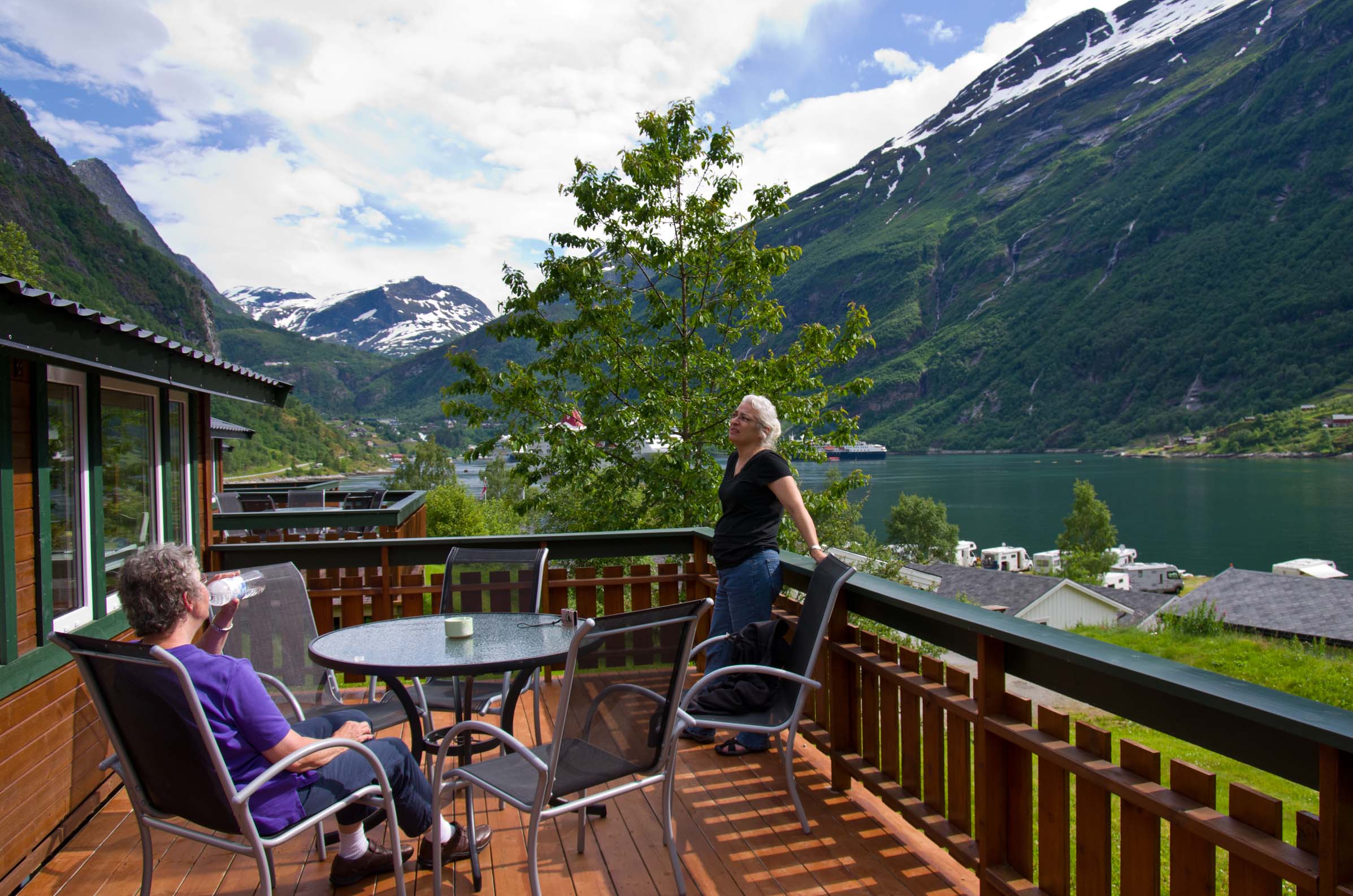 On the deck at Geiranger In the first hut at Geiranger |