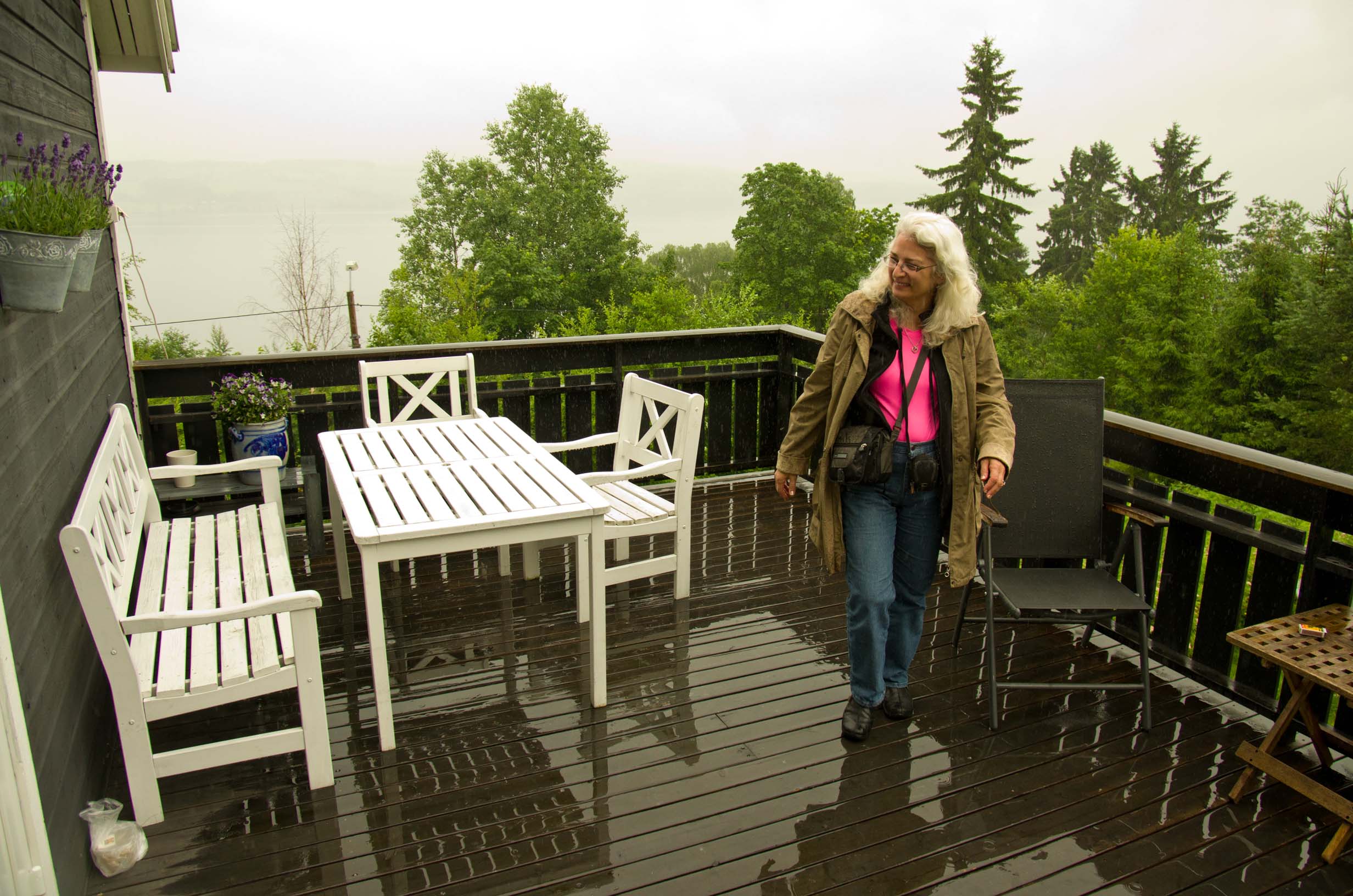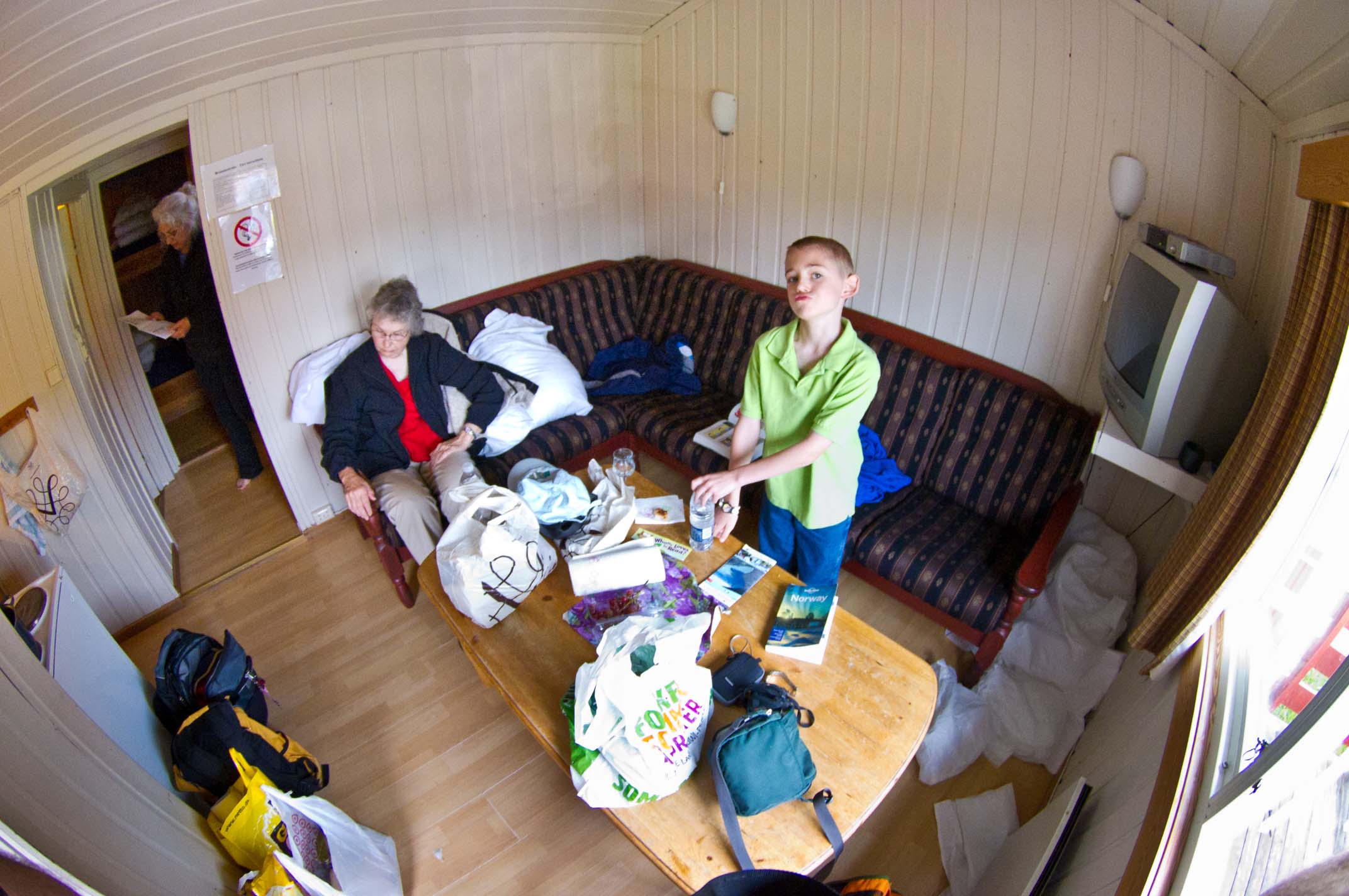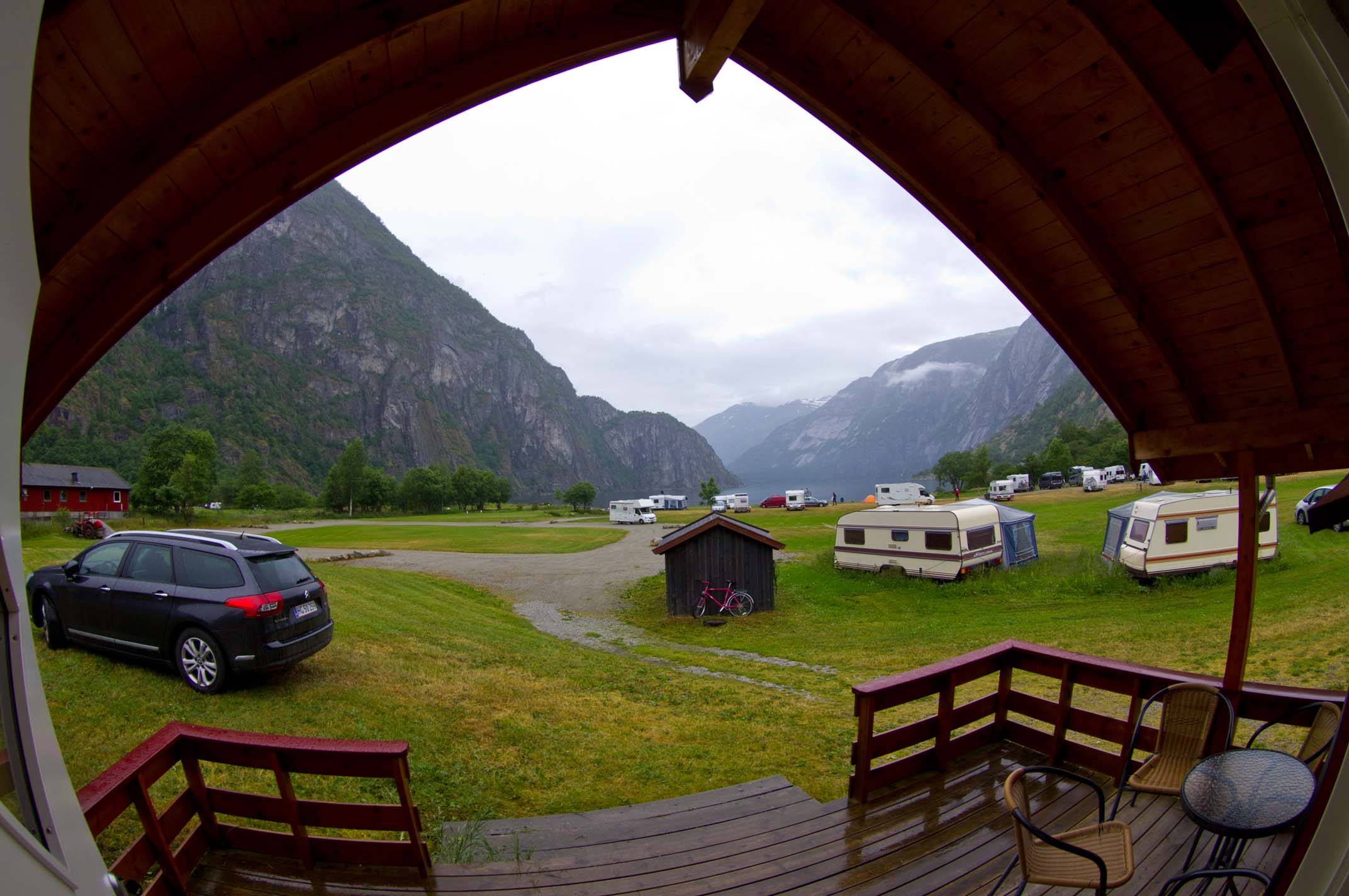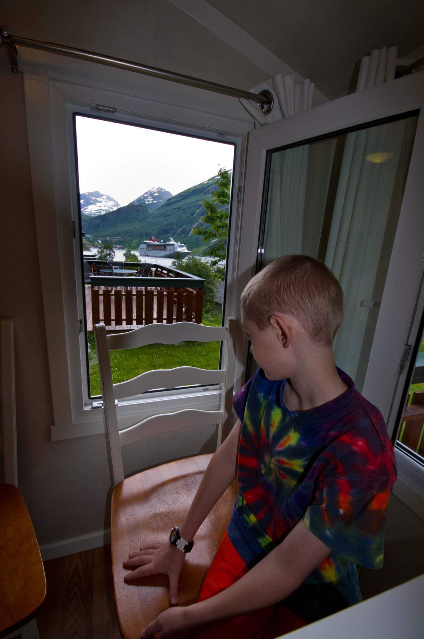 On the deck at Geiranger In the first hut at Geiranger |