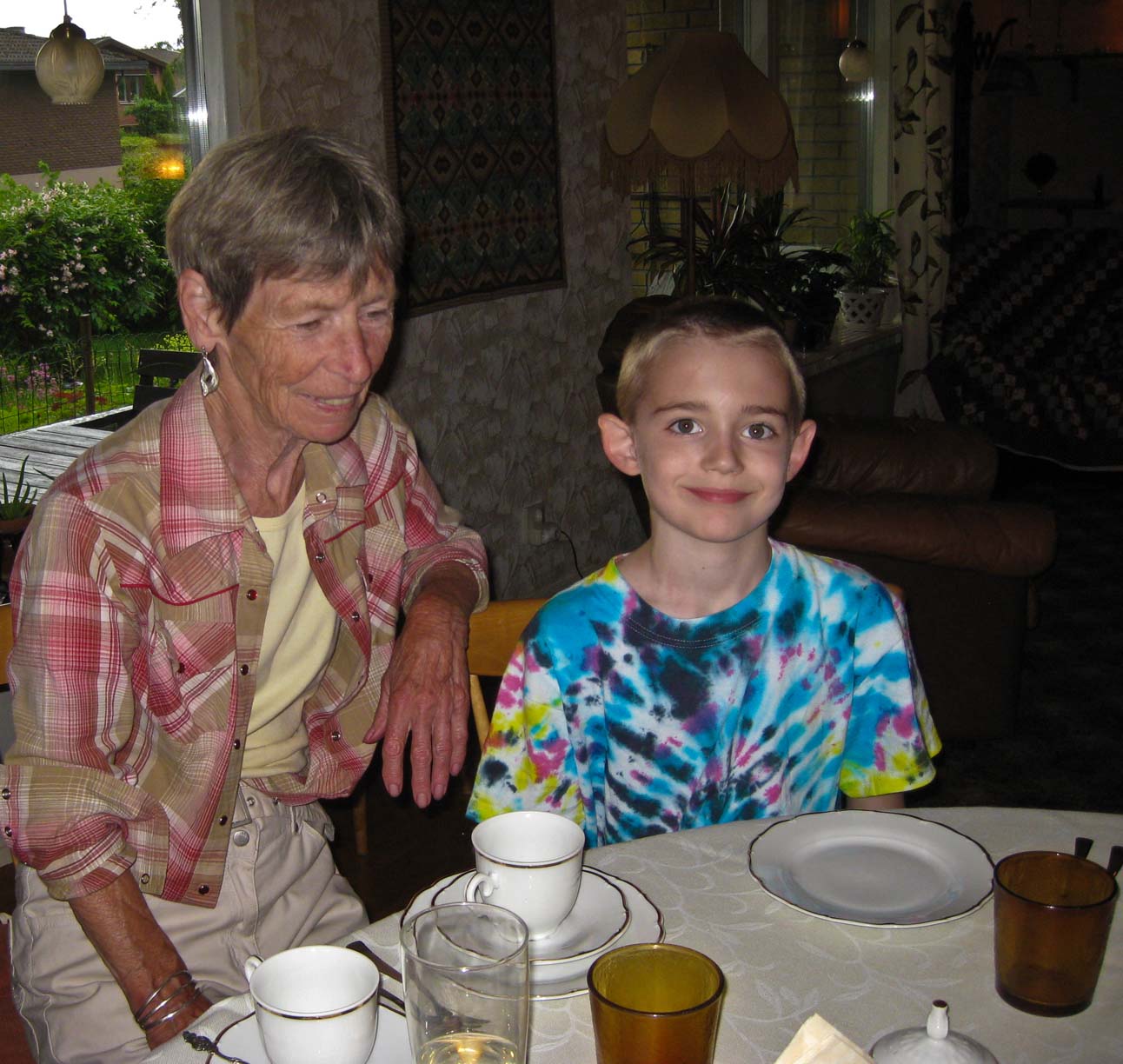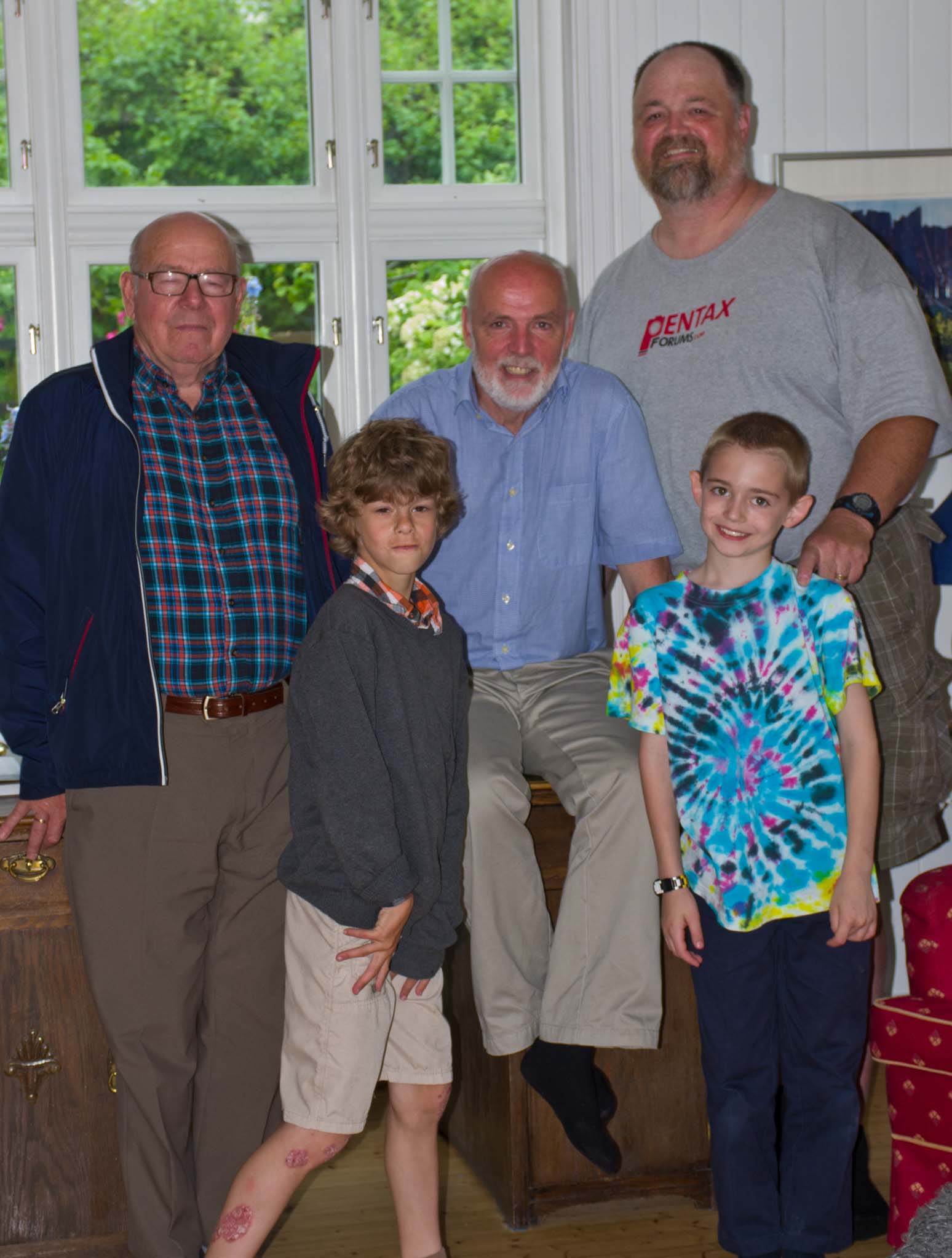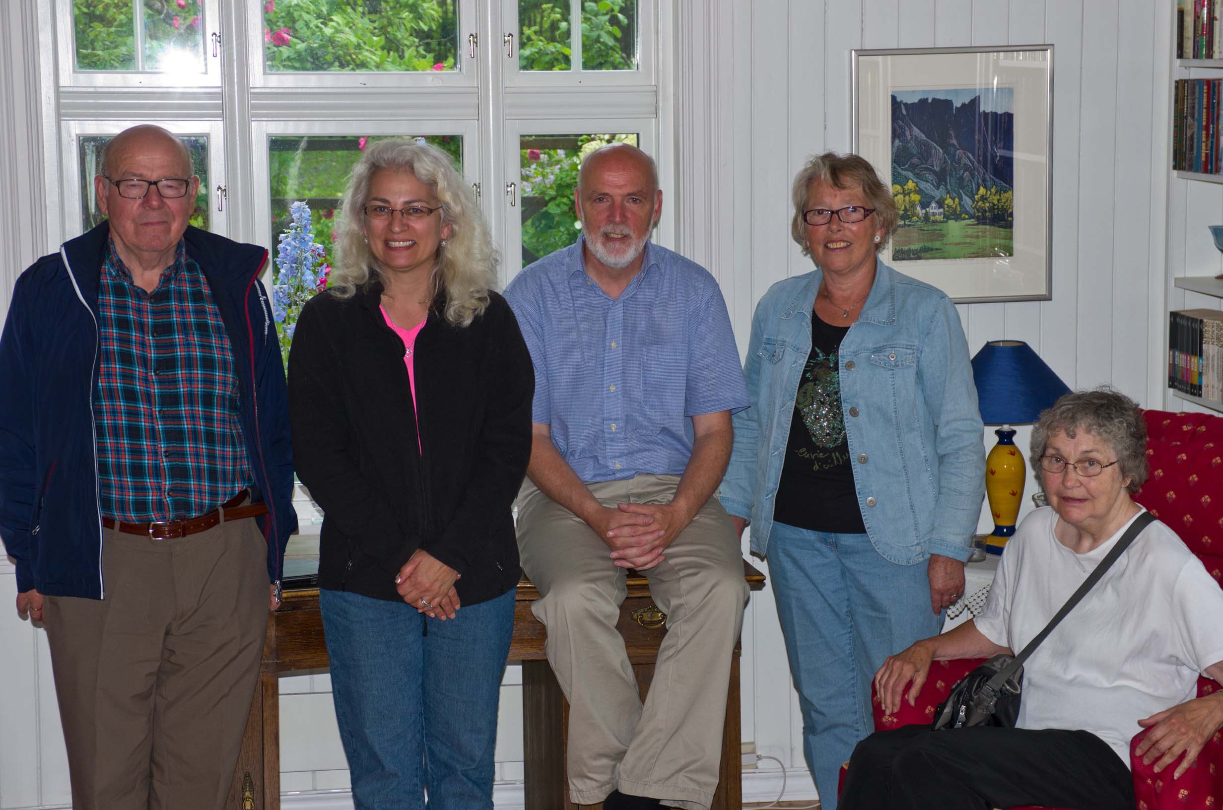 Big family group at Jan and Kitty's home: Back row, L-R: Me, Jan, Jan Erik, my Mom, (Arild's son) Philip, (arild's wife) Kristina. Front row, L-R: Phyllis and Jamie, Arild, Kitty, (Arild's daughter) Sophia |