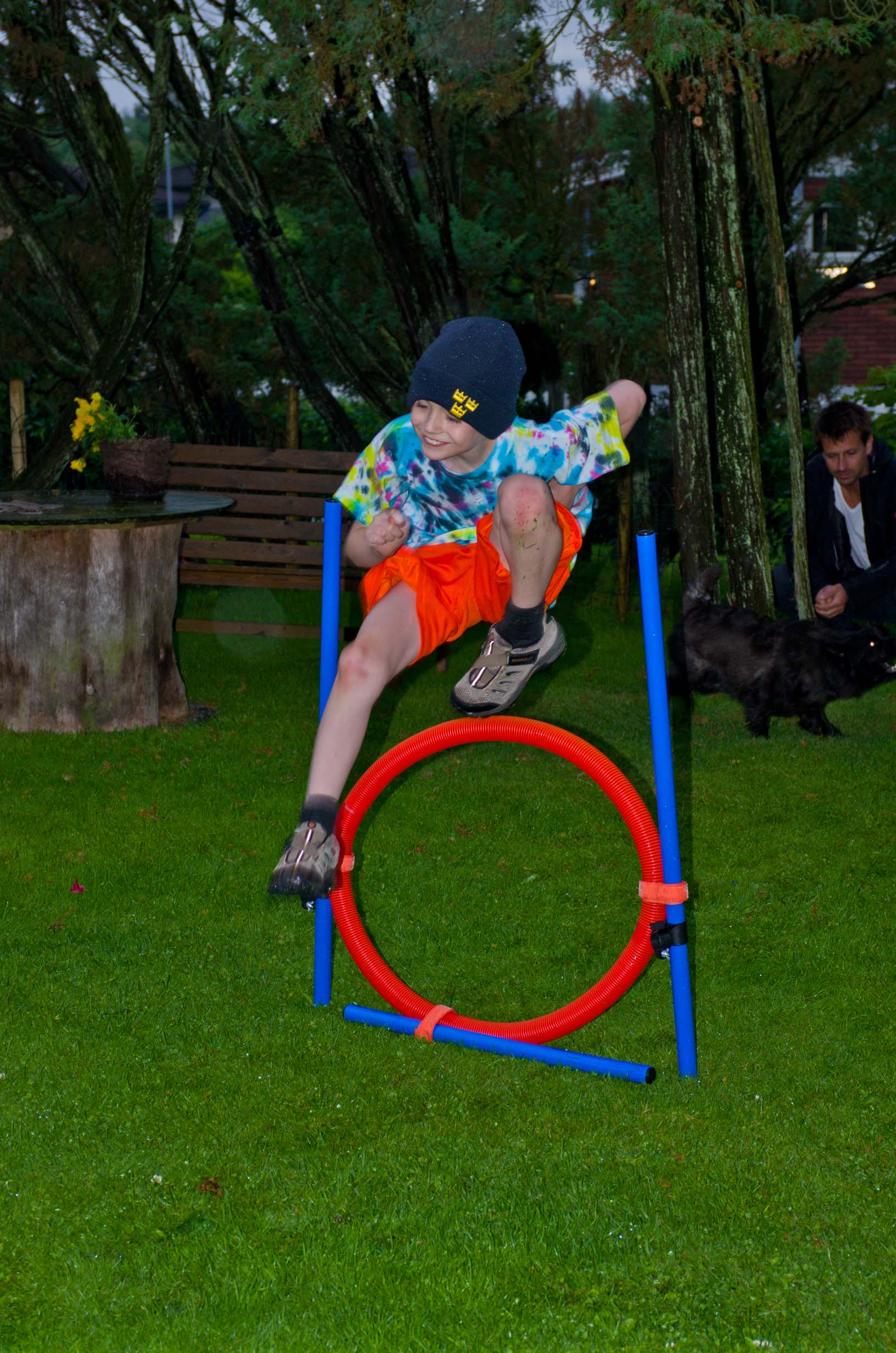 Jamie, leaping Rufus's agility hoop |