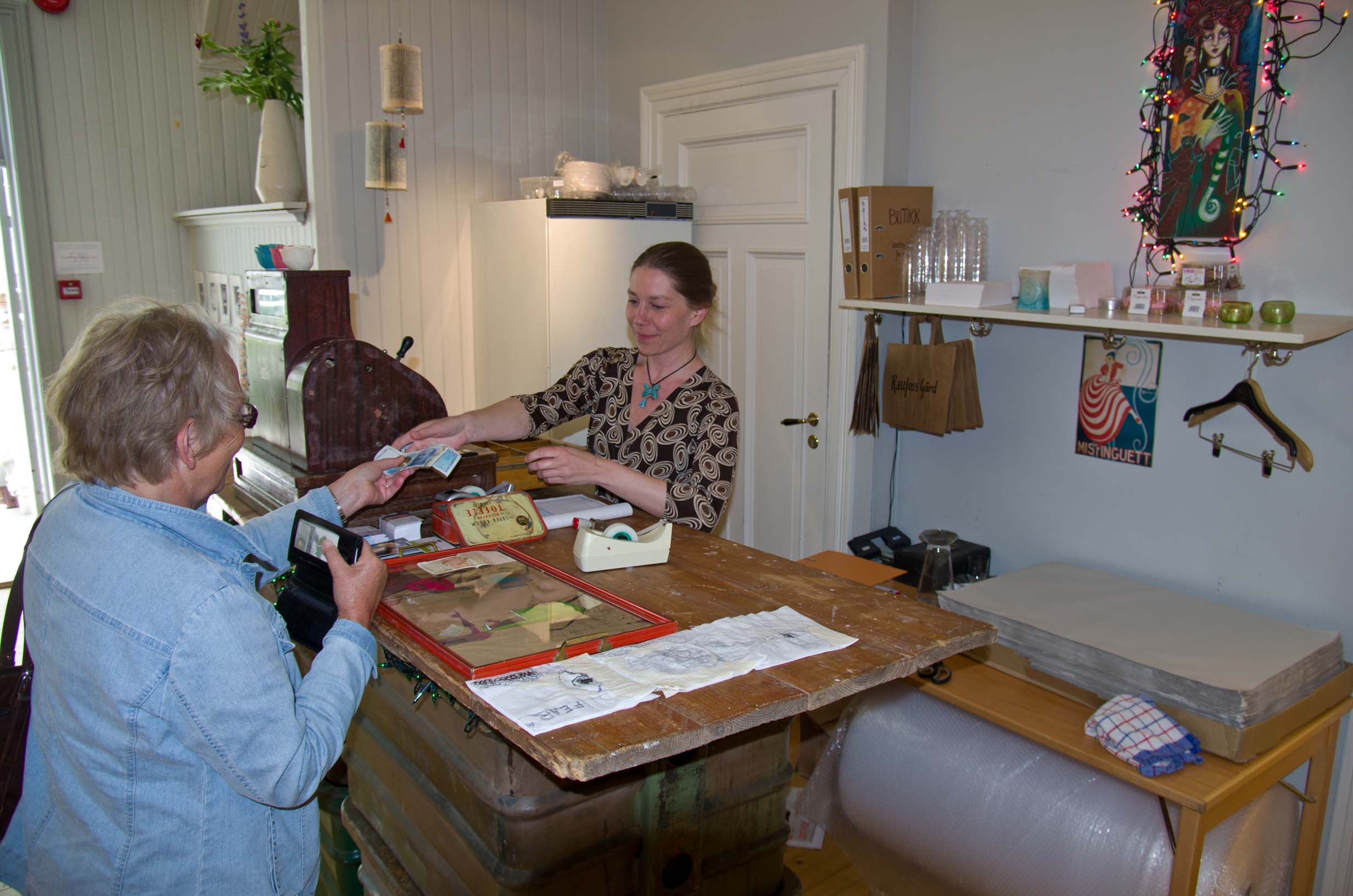 At the Raufossgård, in Raufoss, where Julie has her studio: Julie, in her studio | With another cousin: Kristin Fjellseth, at Raufossgård |
