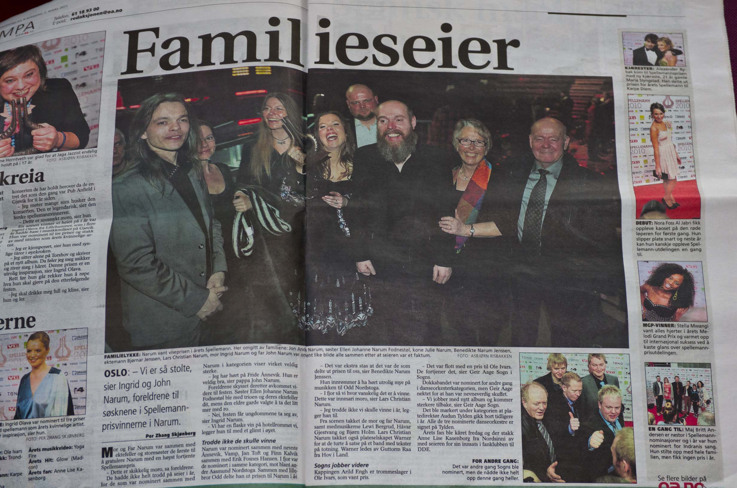 perform at a local event with Knut Anders Sørum. The Narums are the most musically talented family I've ever met. Their own group,