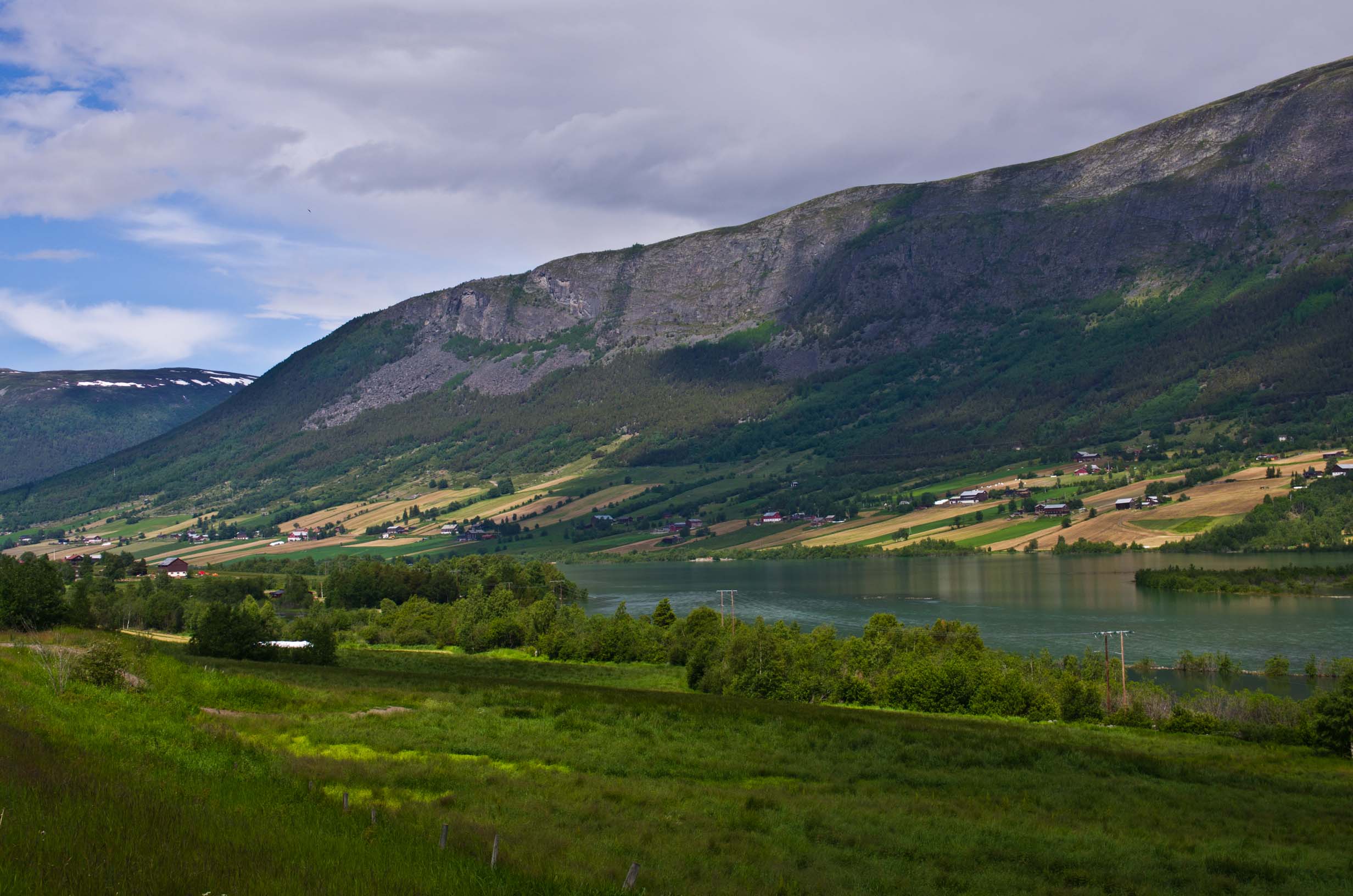 On the way to Bliliegård: The Einafjord behind, looking north. The farm is just above the fjord (lake) on the northeast side |