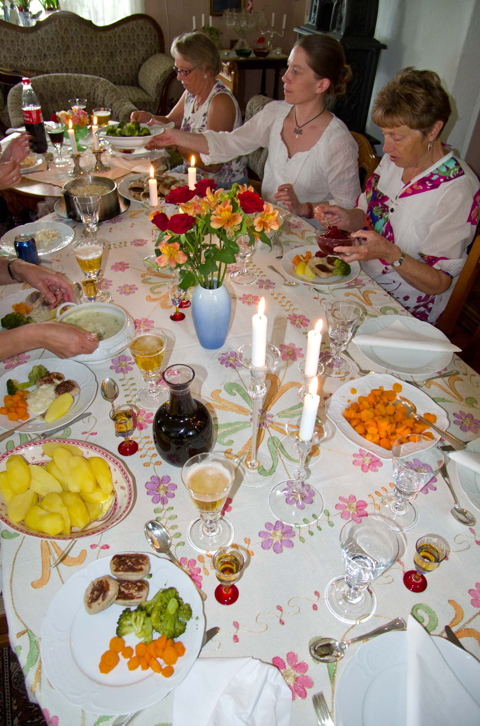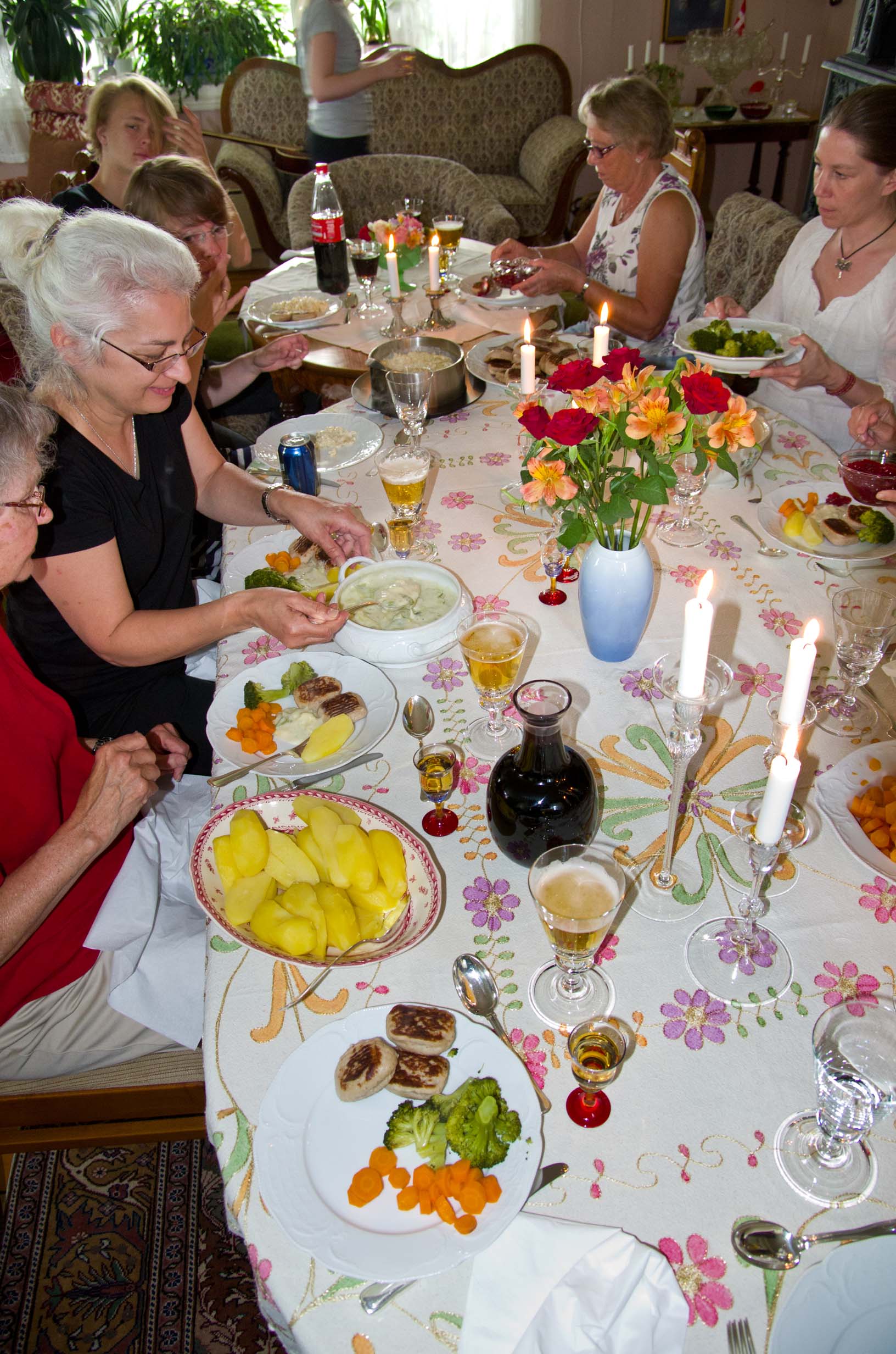 At dinner |