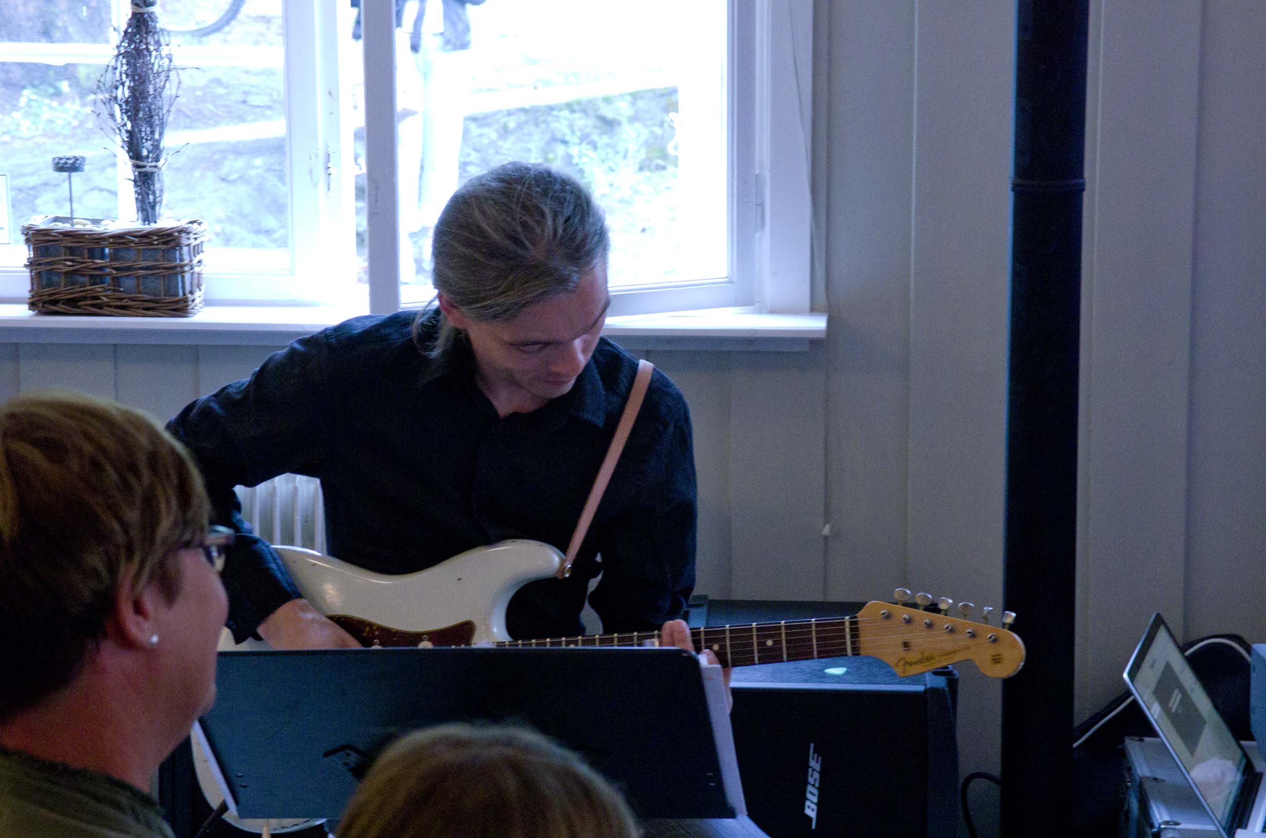 Jørn Fodnestøl, Ellen Johanne's husband playing his hand-built Tele-Strato-caster |