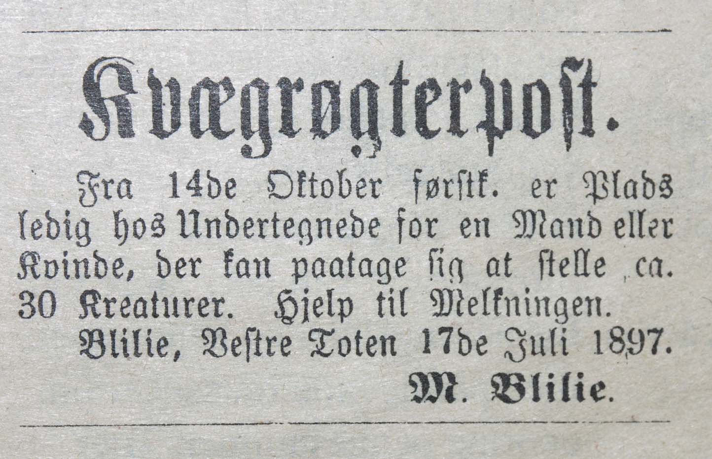 | Jamie and Anders Johan, on the computer | Reproduced newspaper item from Mathias Larsen Blilie from 1897 |