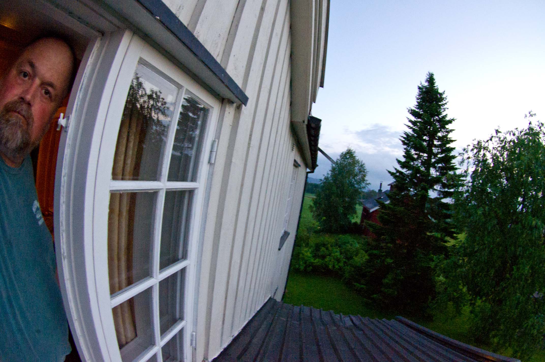 John Martin Narum Fodnestøl | Jamie sleeping | John Arne painting his barn from a lift | Jon Anders and Julie Narum's home on the Einafjord |