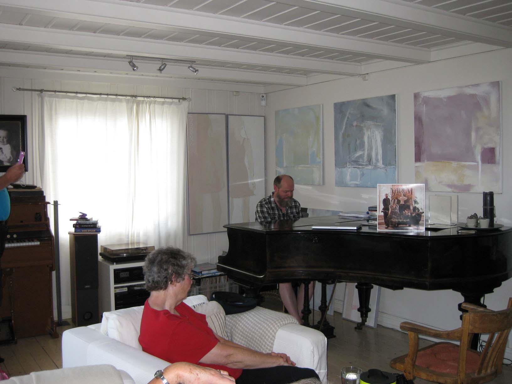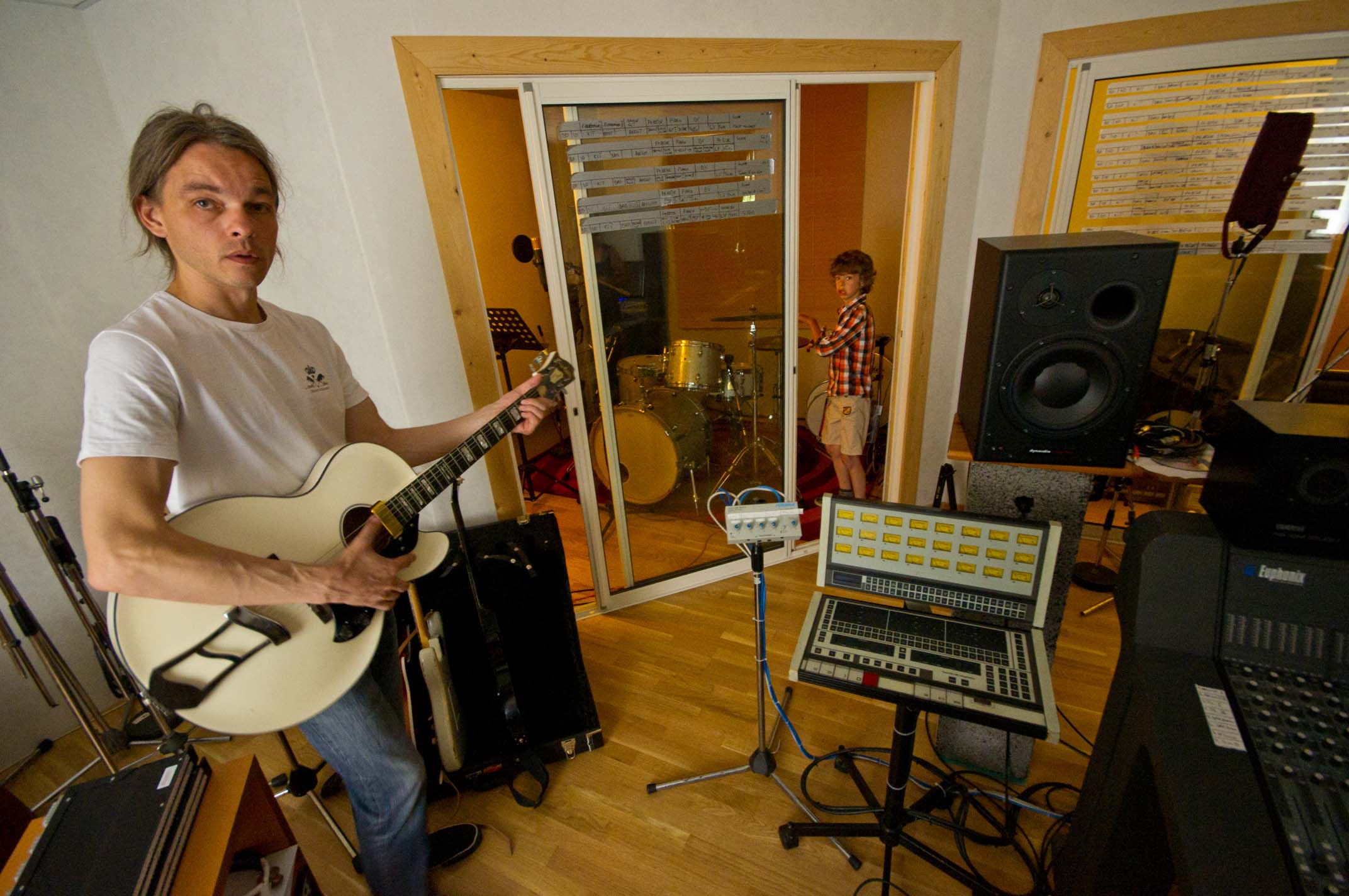 Anders Johan in the studio and Ellen Johanne playing piano |