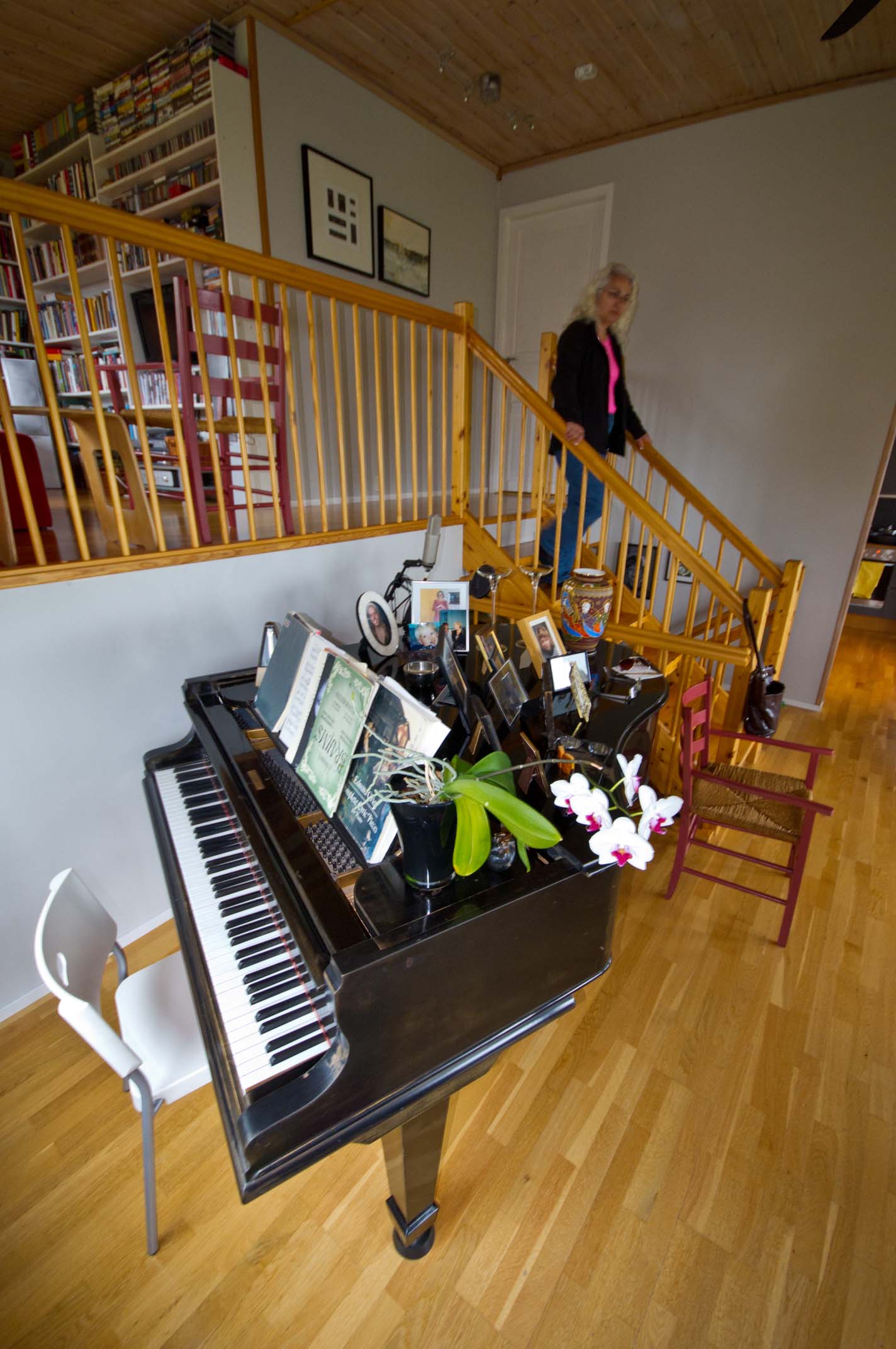 Ellen Johanne playing the piano at her home |