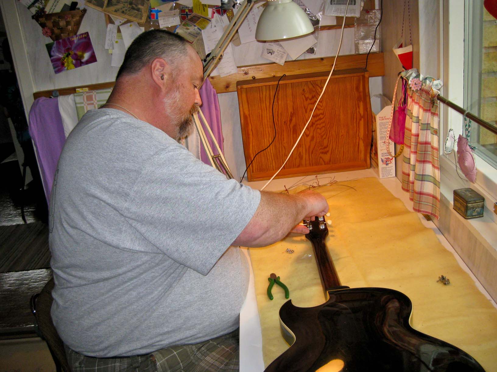 Me, relpacing the tuning machines on Jan's guitar |