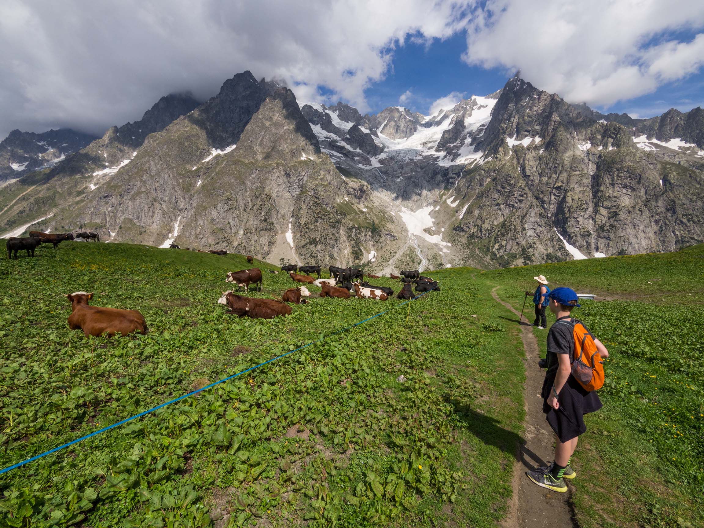 to Mont Blanc, the Grandes Jorasses. Phyllis and Jamie