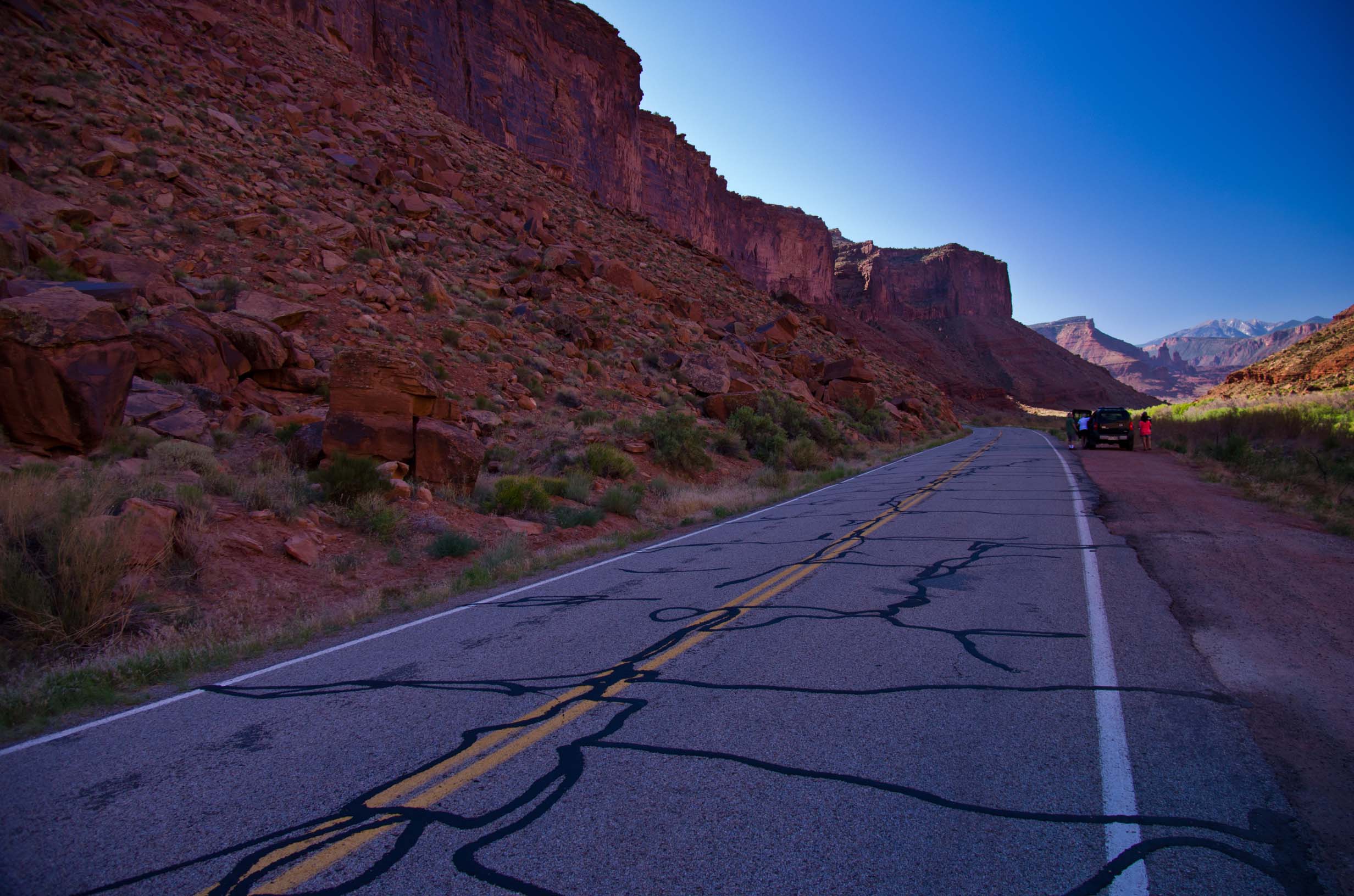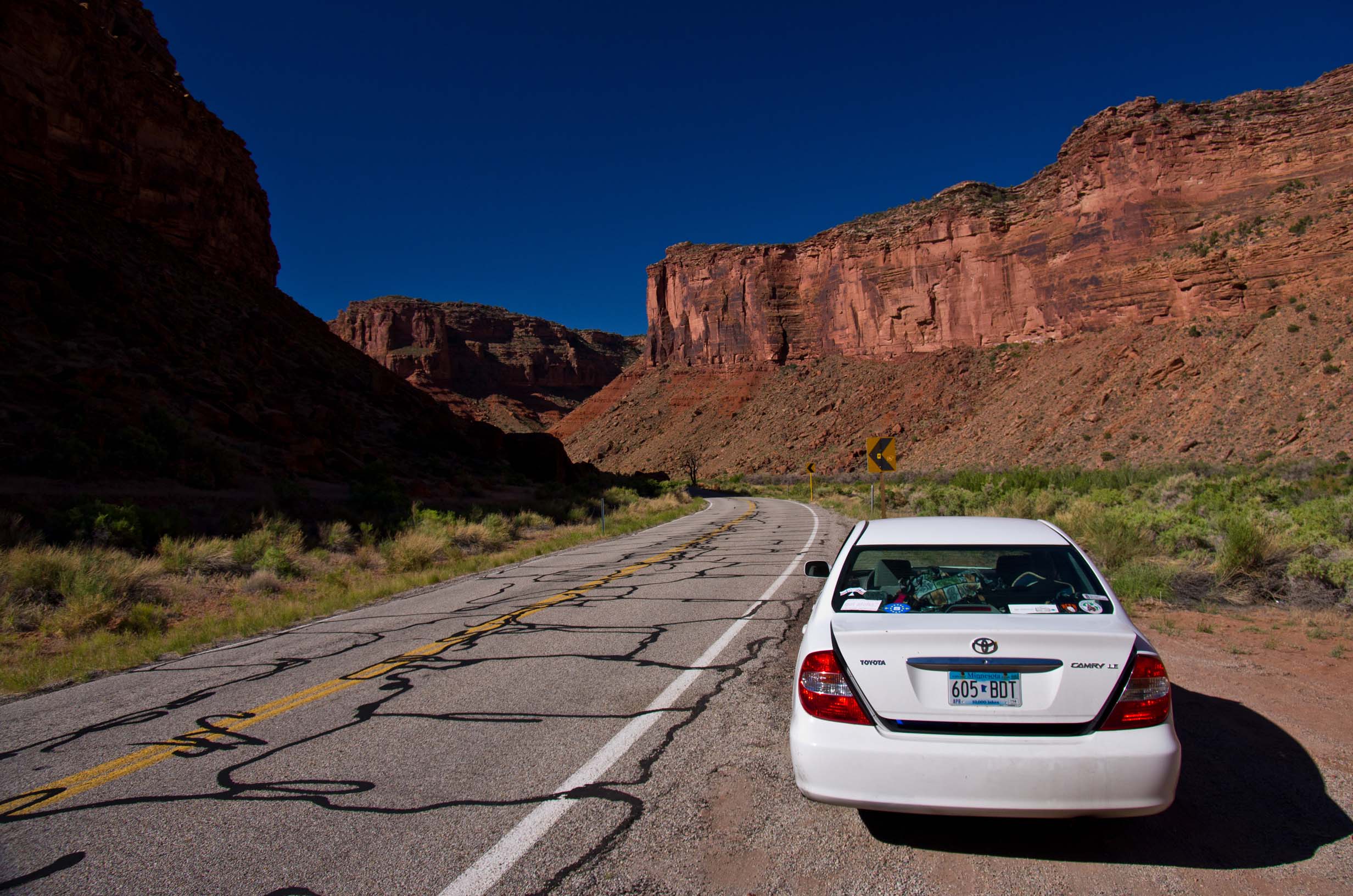 roads I've driven, through beautiful red canyons on a narrow, twisting two-lane road. We were in Moab by late