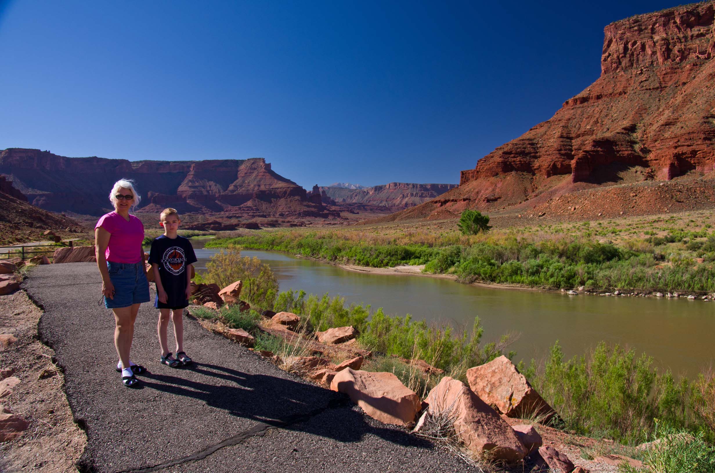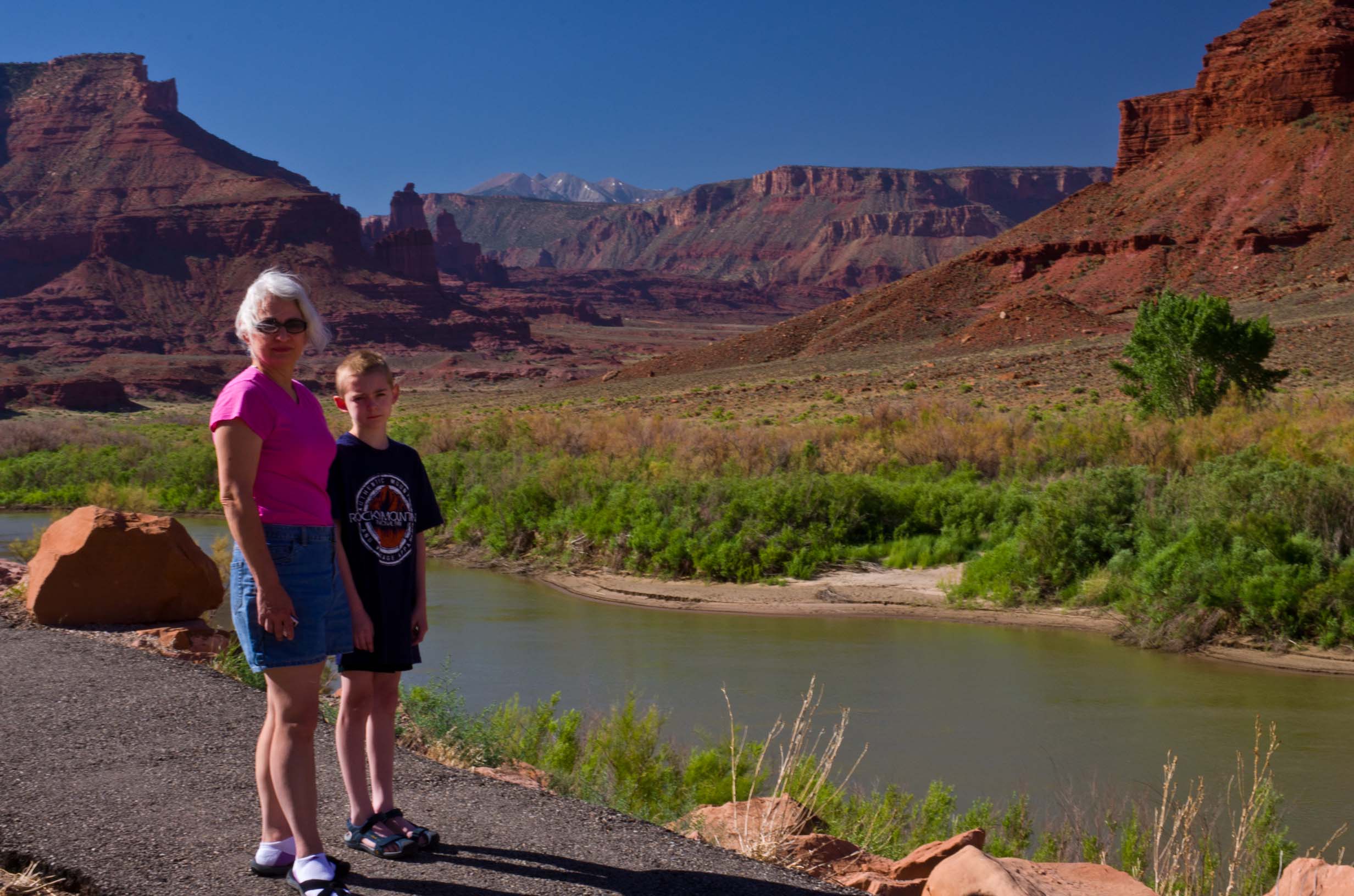 Moab by 9 am. We took this short cut (Utah Hwy 128) along the Colorado River, and it is one of the prettiest