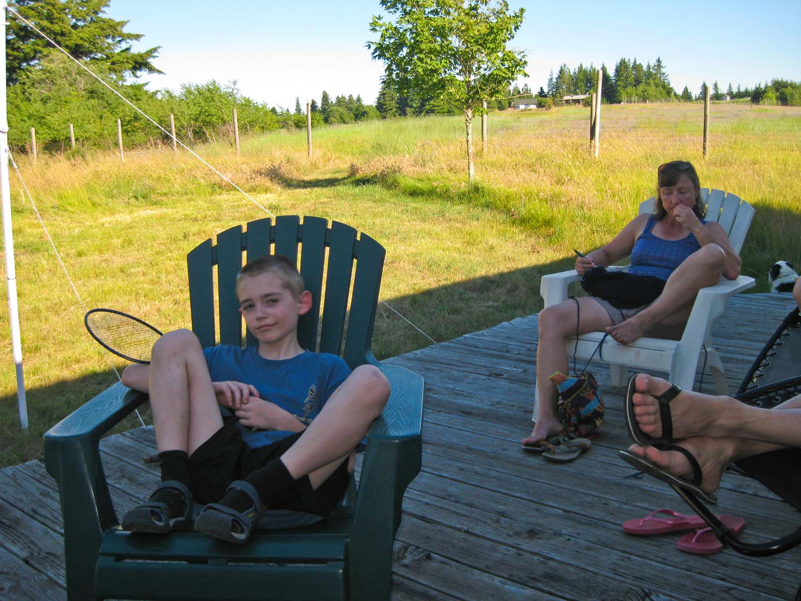 Jamie on his special chair at White Salmon that Anne gave him:
