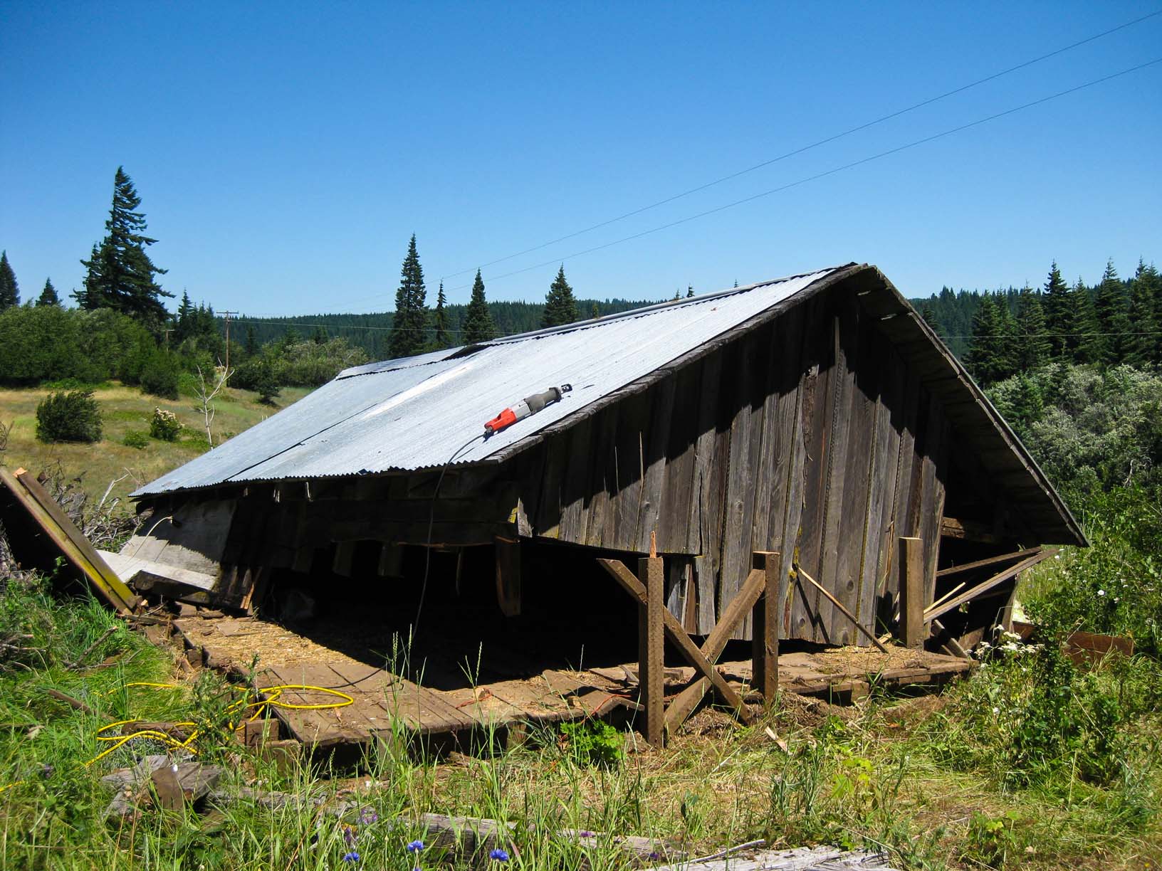 Starting to tear down the big shed. |