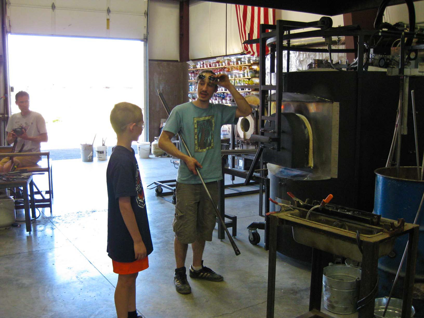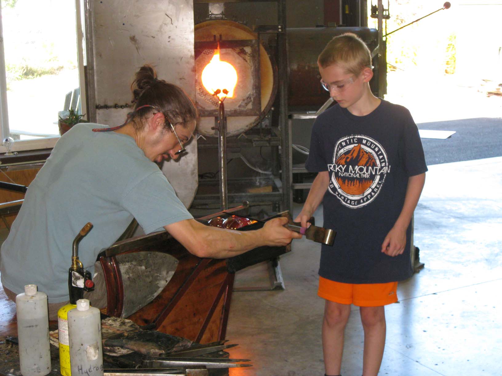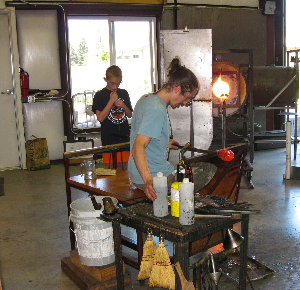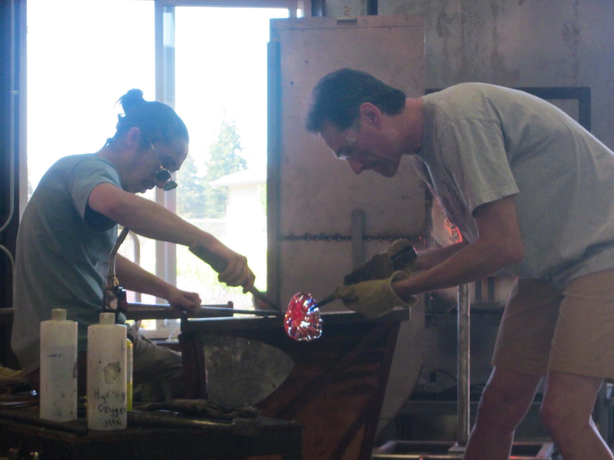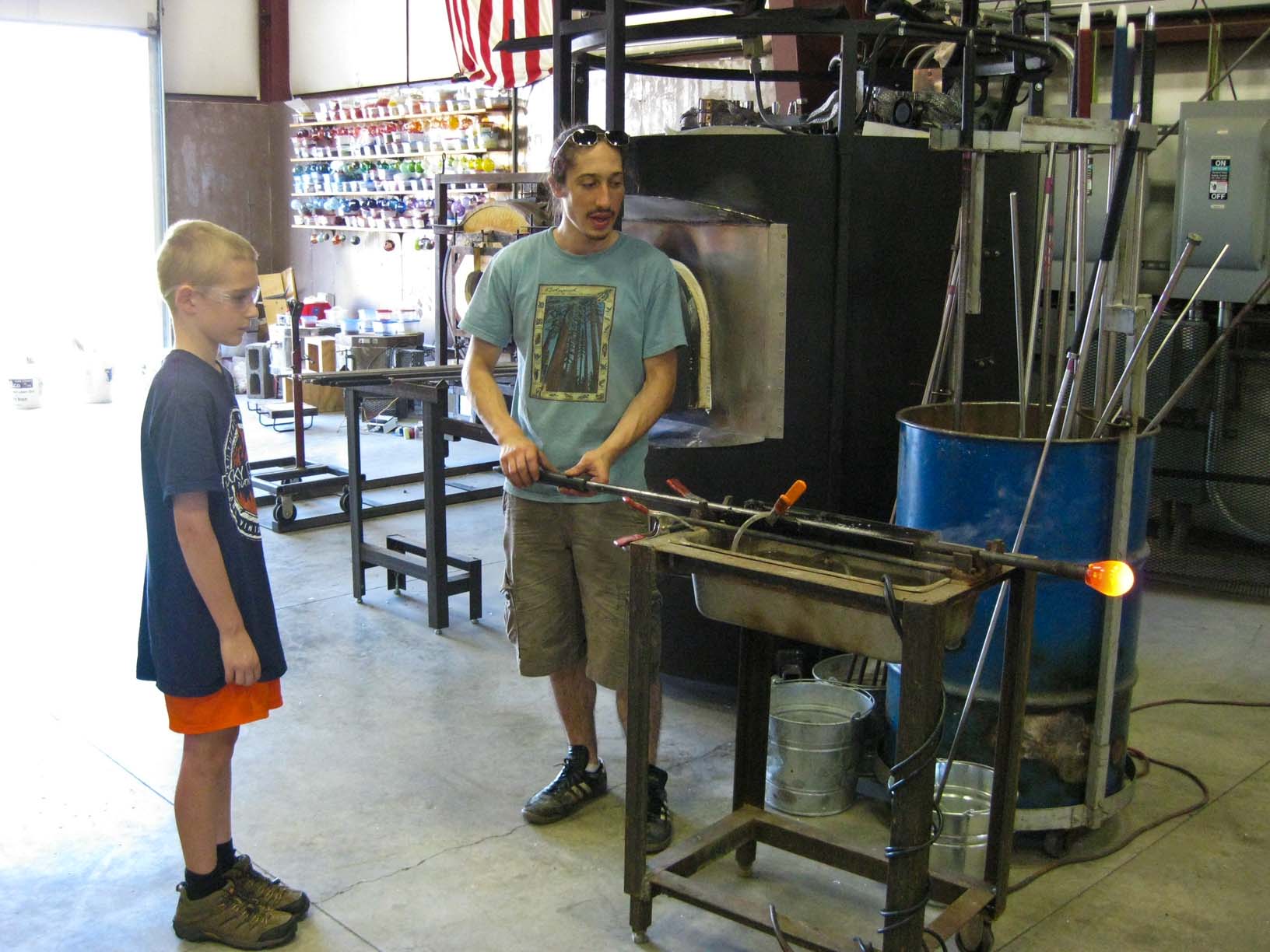 At Glassometry in Hood River Jamie, helping to make his glass |