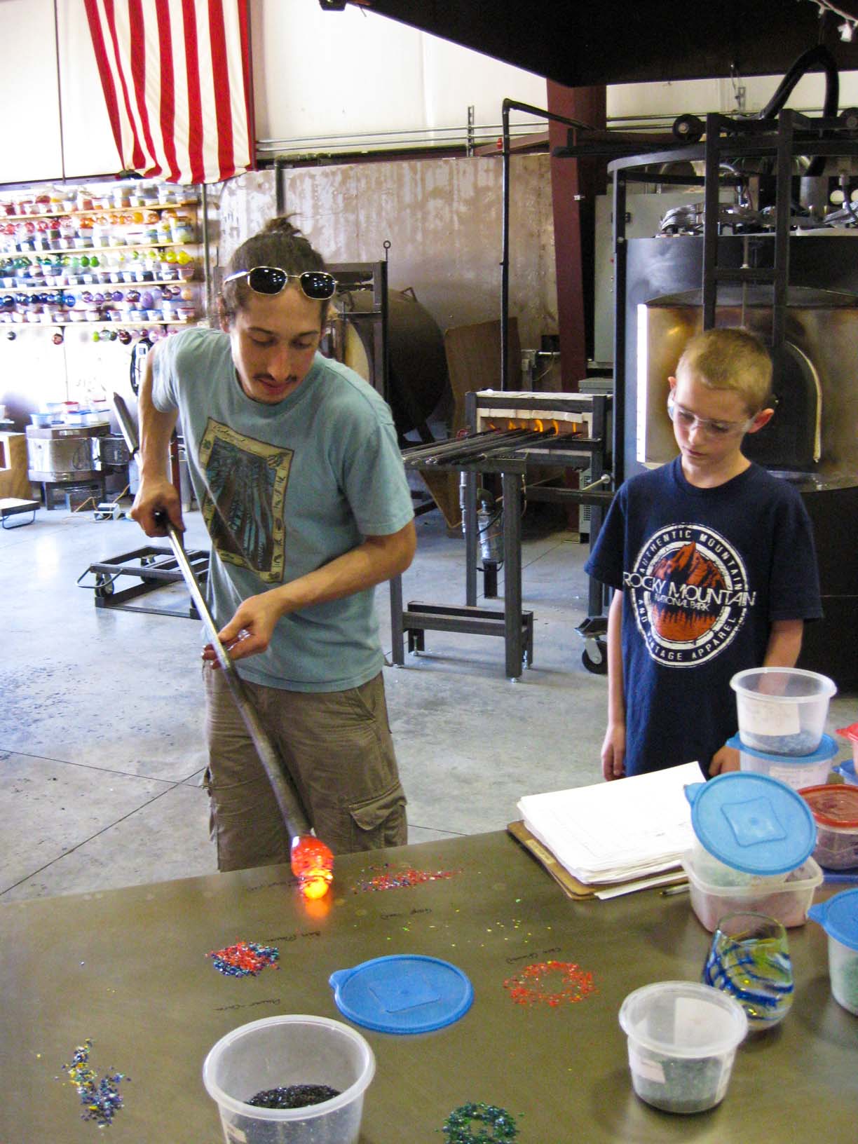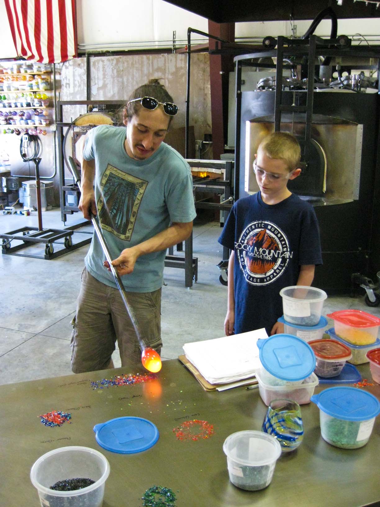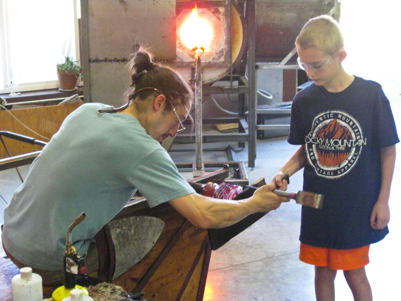 At Glassometry in Hood River Ben helping to make his glass |