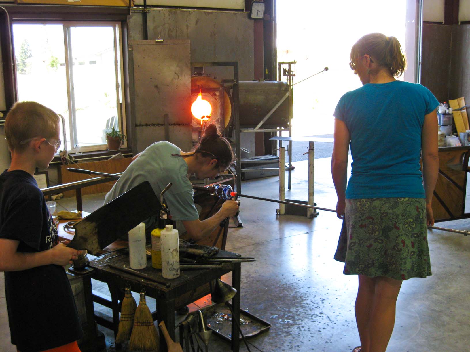 At Glassometry in Hood River Jamie, Cara, and Ben made glass |