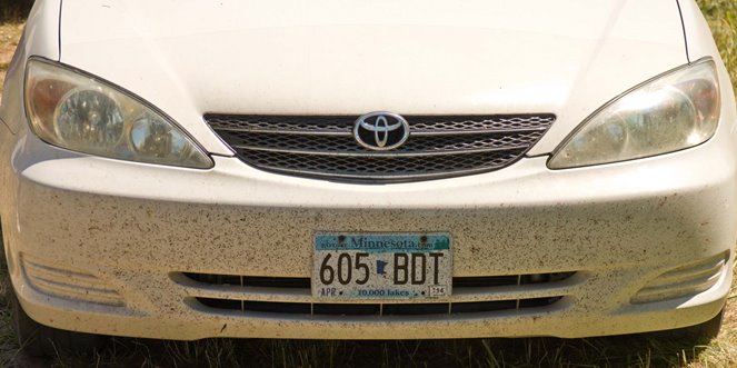 Our trusty steed after the road trip: The bugs of many states!