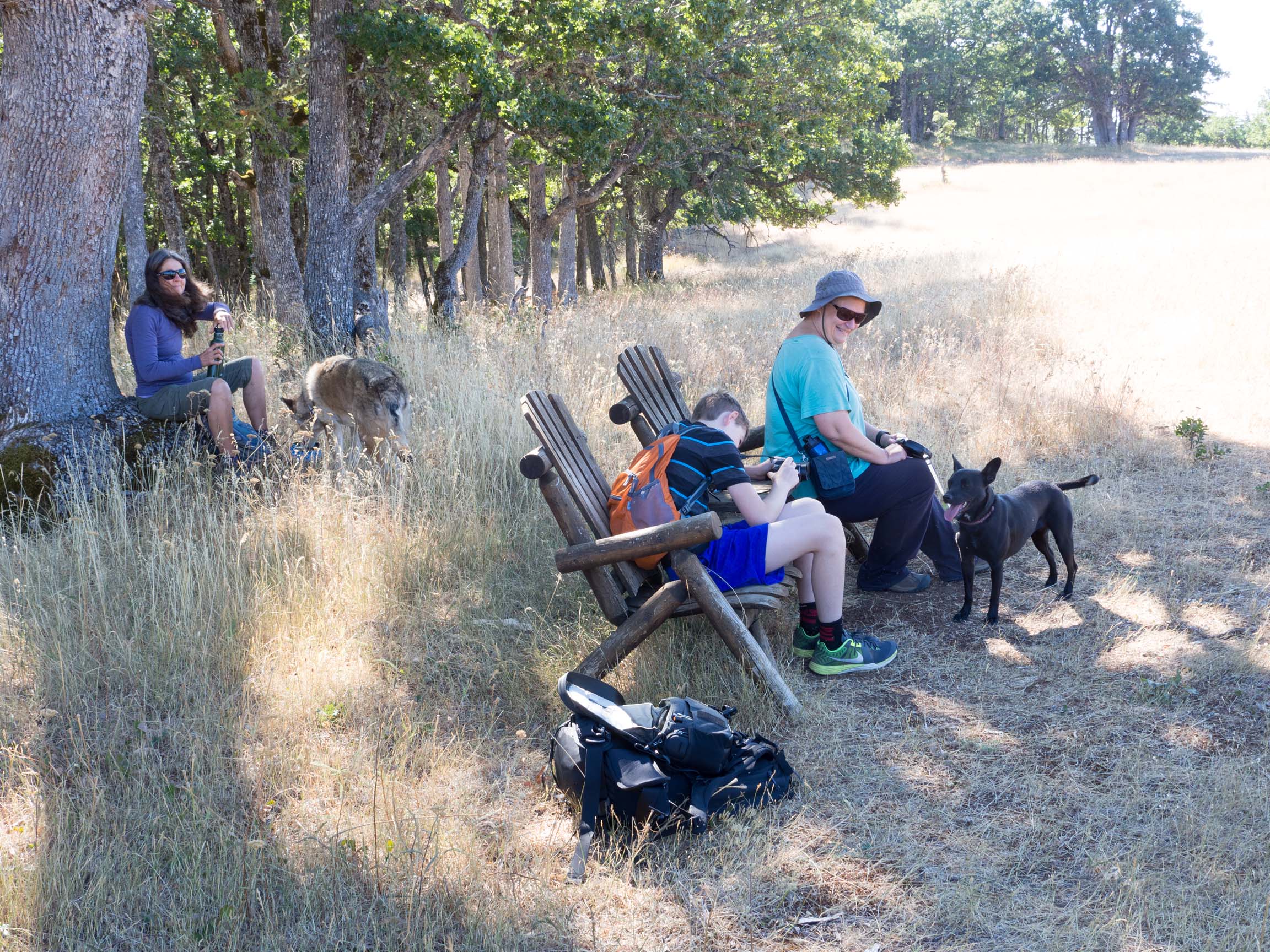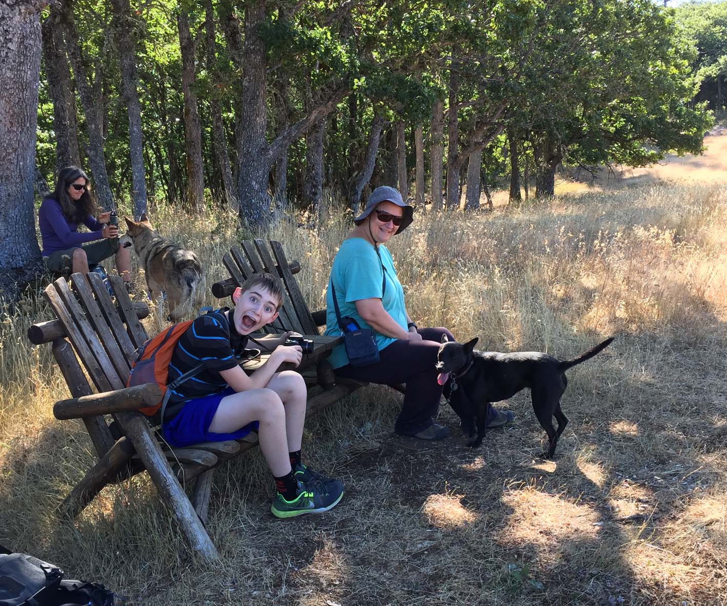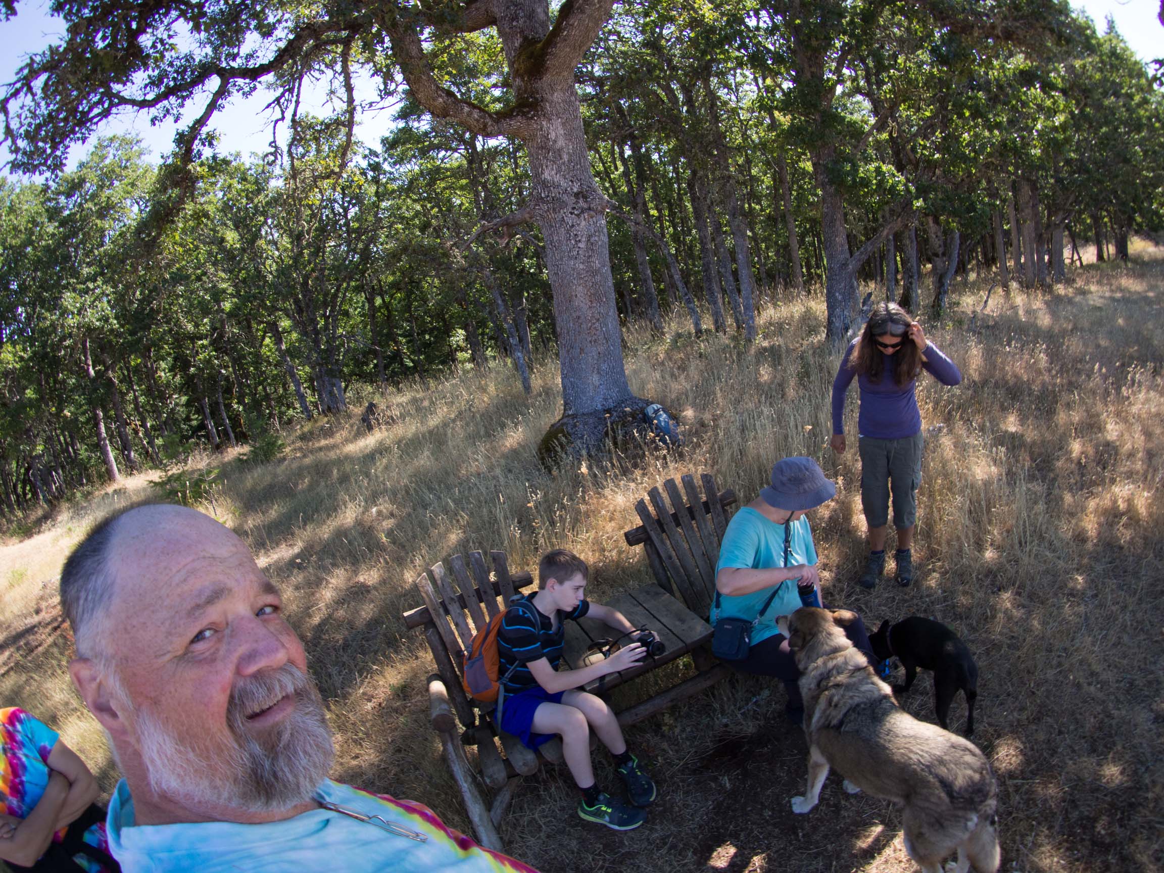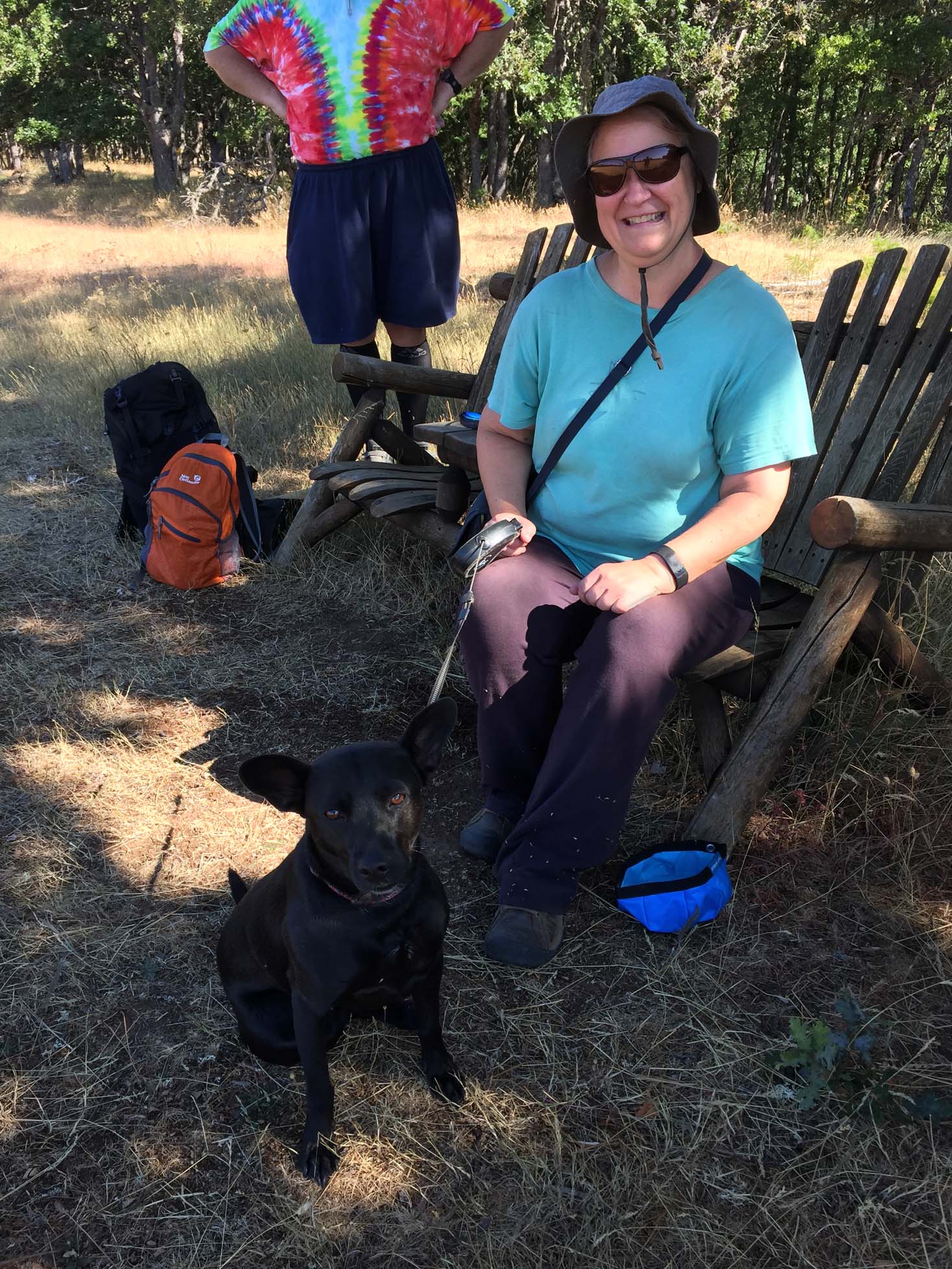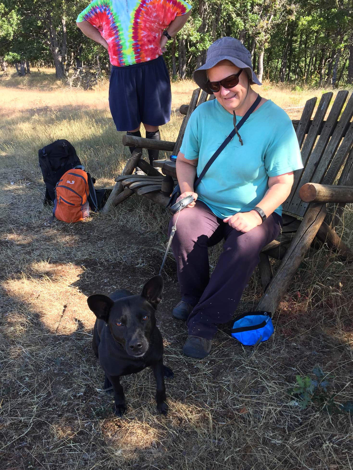 Bench near Allen Oaks with Chris and Anne (and Timber