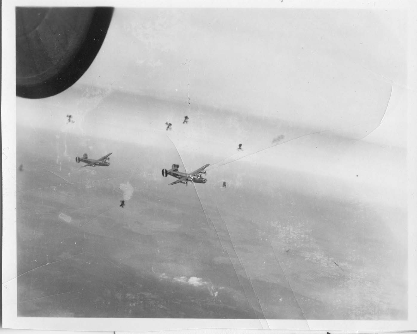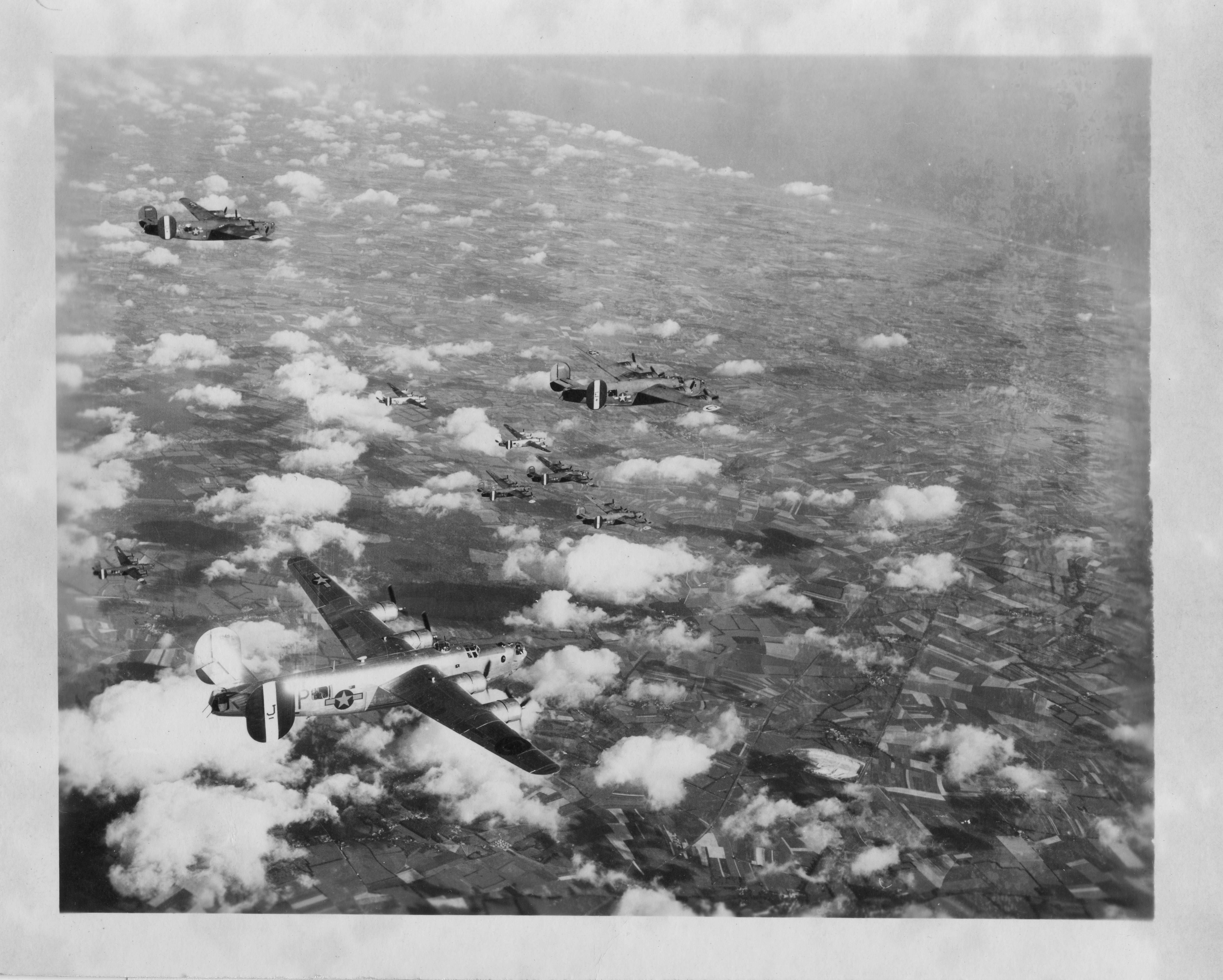 B-24s over Germany. With the new (1944) 389th Bomb Group tail