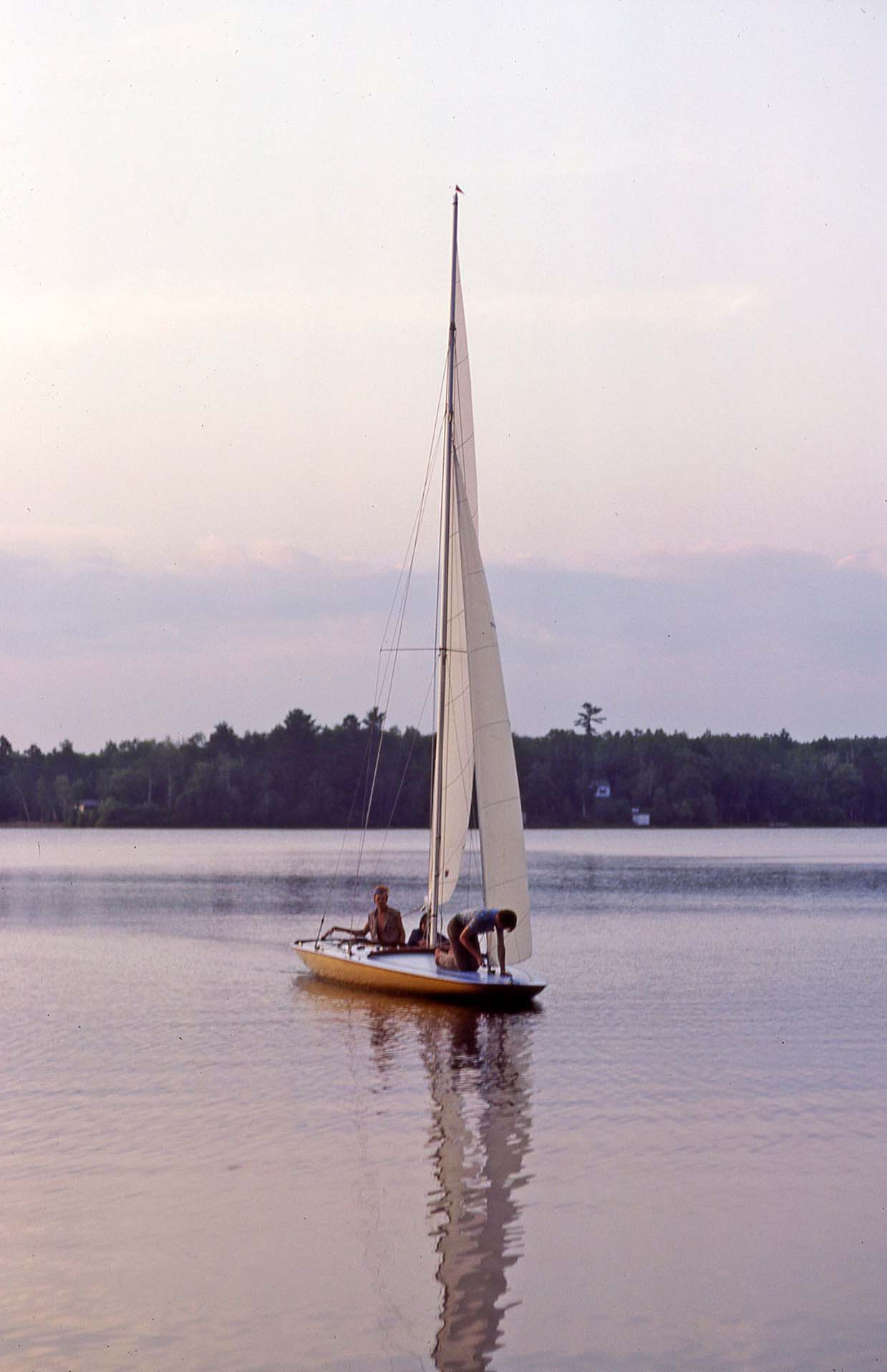 Rod Herman's sailboat on Mitchell Lake, with Julie on board |