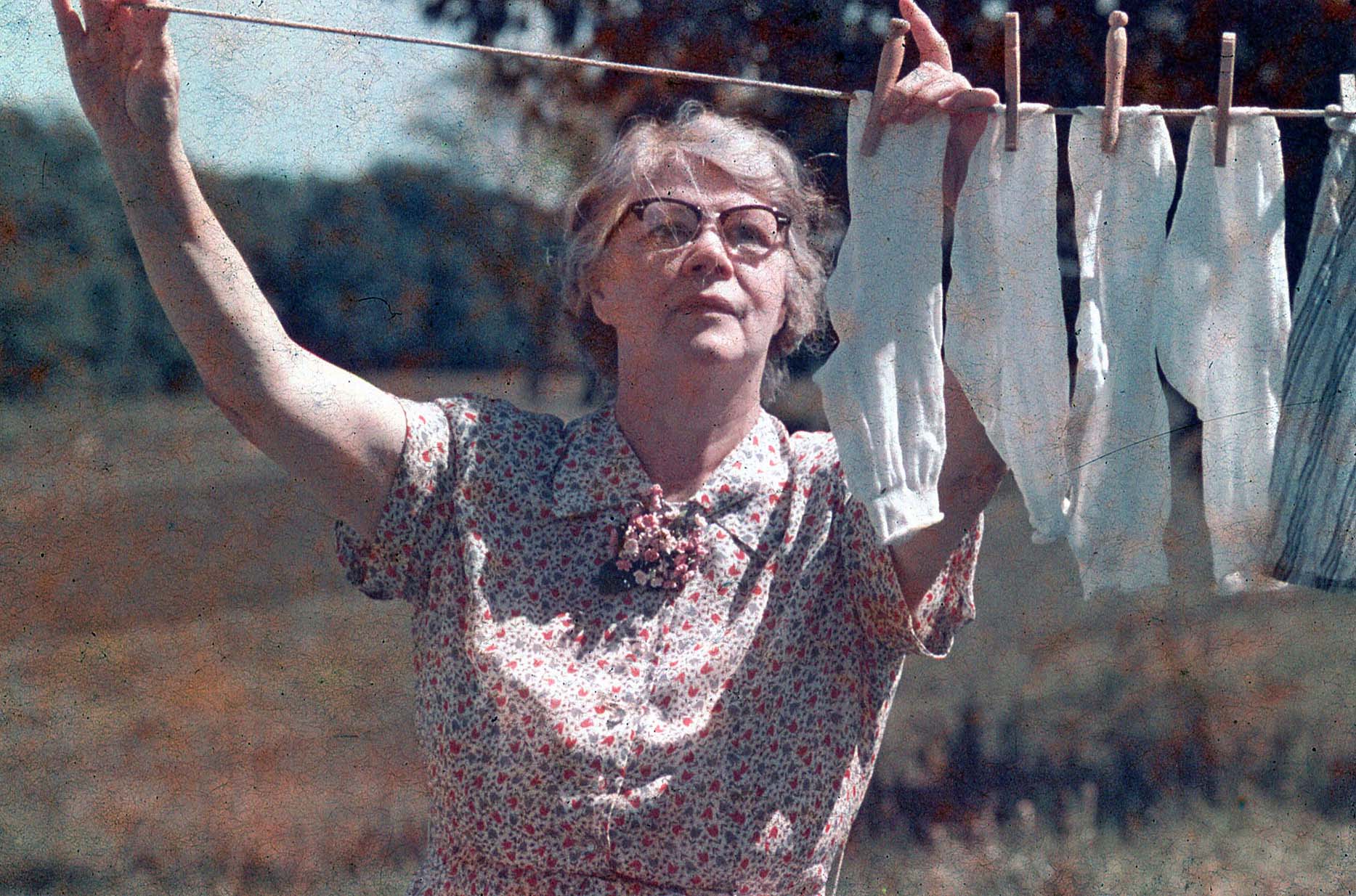 he used Kodachrome, the colors are still well preserved. On other materials, the color has nearly