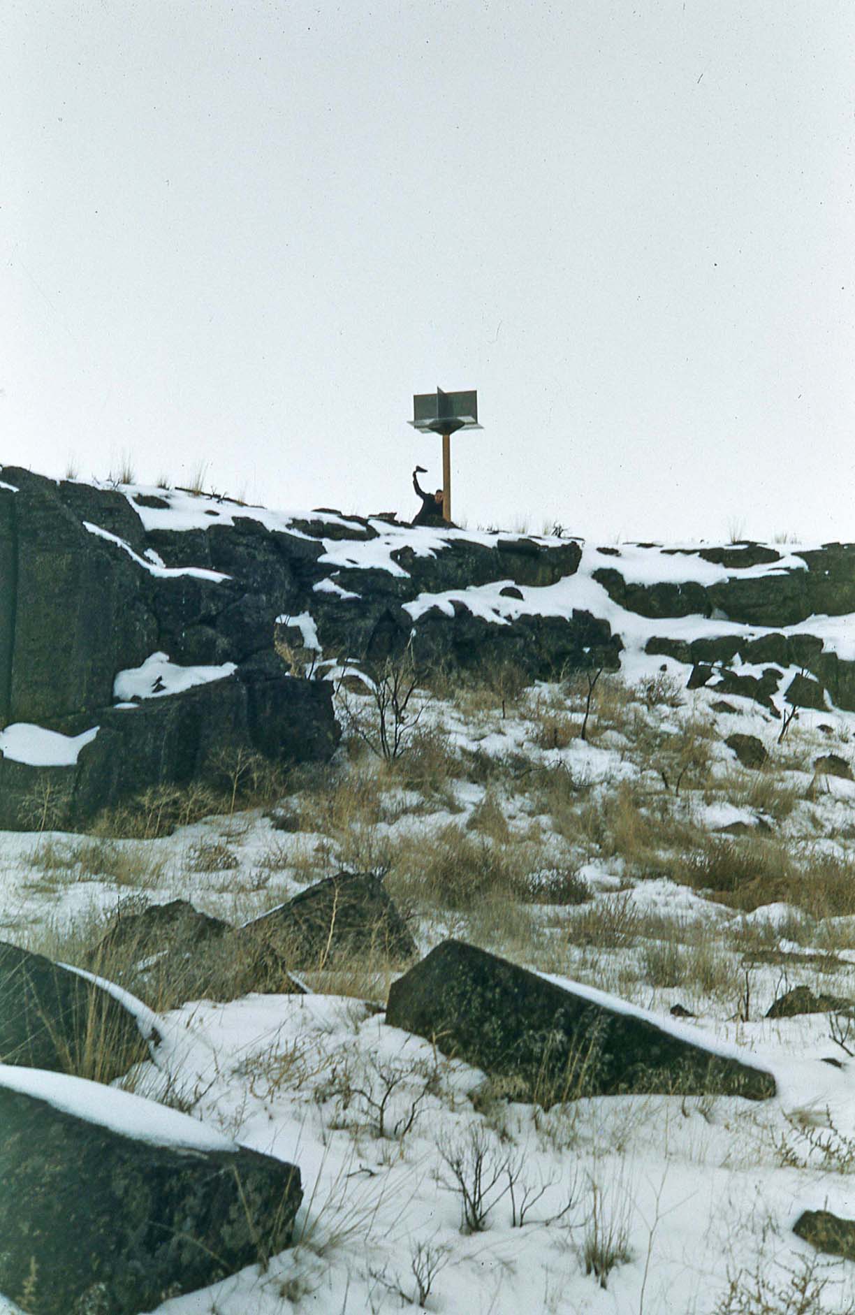Background image is my Dad (R) with Adolph Lion and a radar corner reflector my Dad designed, Moses Lake, WA, 1953 or 1954, winter